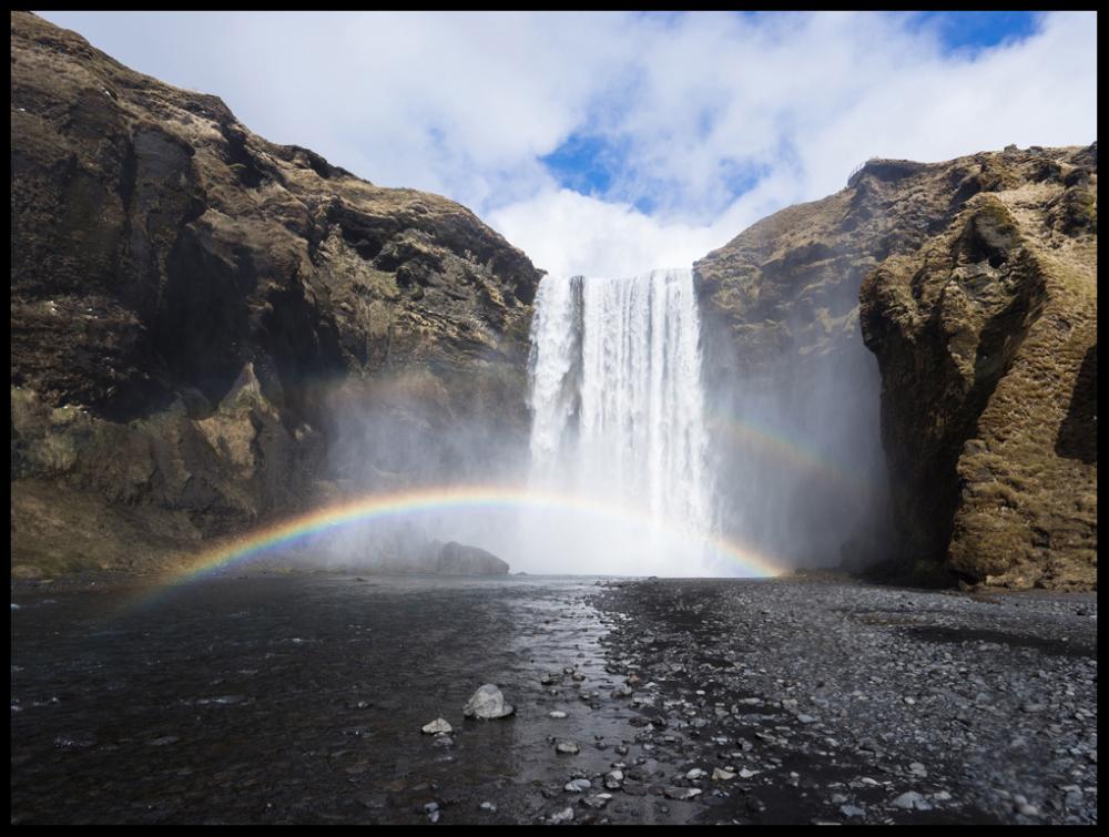 Poster mit einem tosenden Wasserfall und einem Regenbogen, der sich in den wirbelnden Wasserströmen gebildet hat. Eine Fotografie in dumpfen Erdtönen, die einen Kontrast zum weißen Wasser und den Wolken bilden. Hängen Sie diesen Druck zusammen mit anderen Naturmotiven auf, oder kreieren Sie eine Bildserie, oder kombinieren Sie es mit dem Poster Vattenfall II. Das Bild macht sich sowohl in einem Holzrahmen, als auch in einem Metallrahmen gut. Wählen Sie das aus, was zu Ihrem Einrichtungsstil am besten passt.