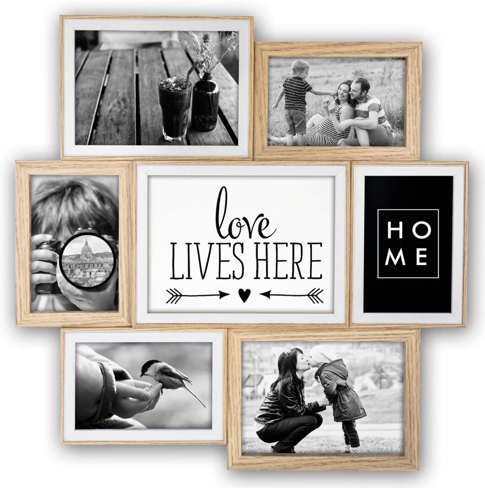 Hübscher Collage-Rahmen aus Holz mit Platz für sieben Bilder in variierenden Größen.