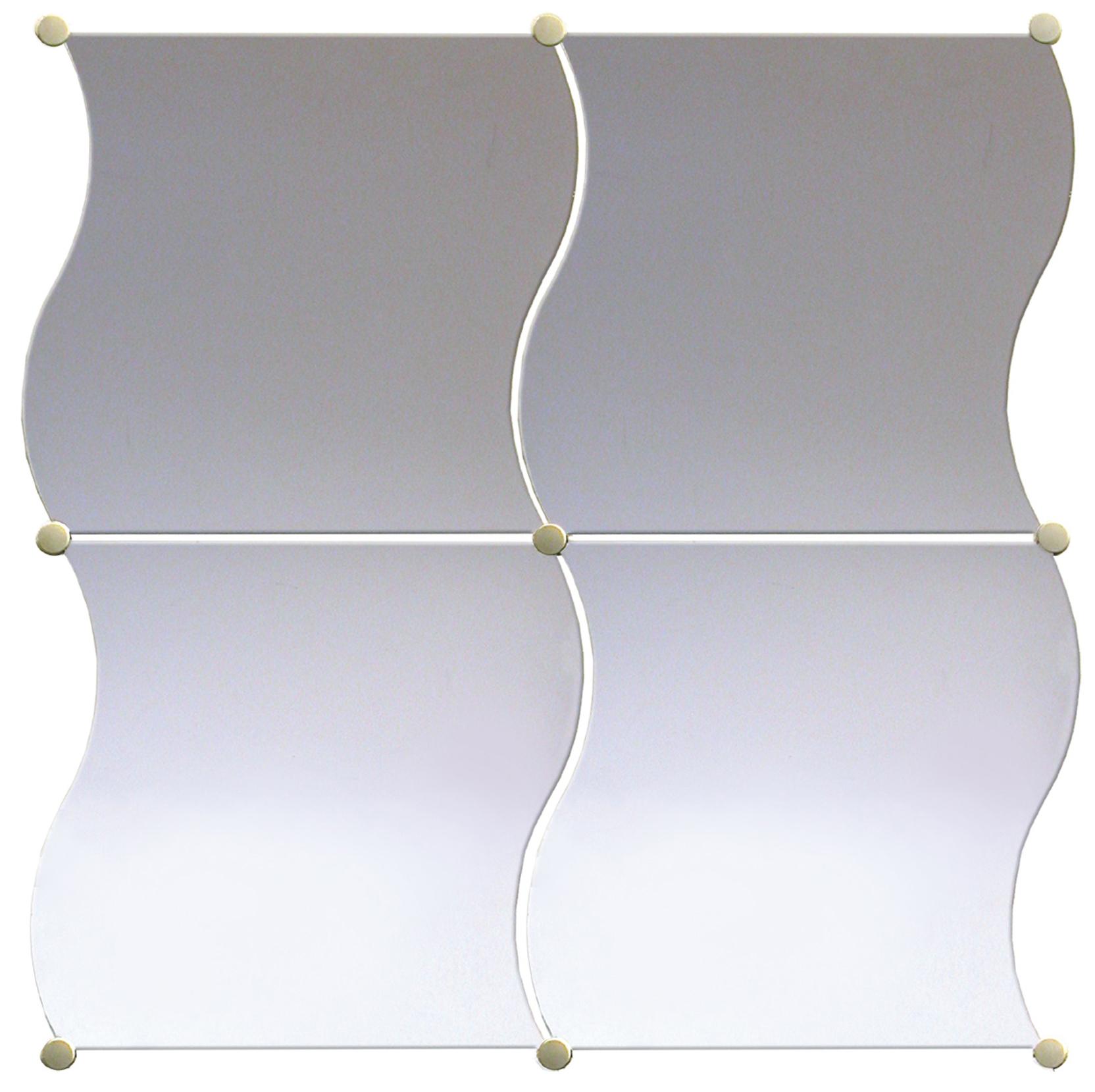 Ein perfektes Paket, wenn du deine eigene Spiegelwand entwerfen möchtest. Wellenförmige Spiegelstücke mit einer Tiefe von 3 mm in einer Größe von 30x30 cm, im 4er-Pack gemeinsam mit 10 Befestigungspunkten erhältlich, damit du deine Spiegelwand problemlos kombinieren und so groß machen kannst, wie du möchtest.