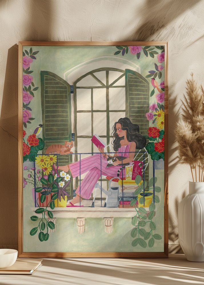 https://www.bgastore.at/Woman-reads-on-balcony-Poster-30x40-cm