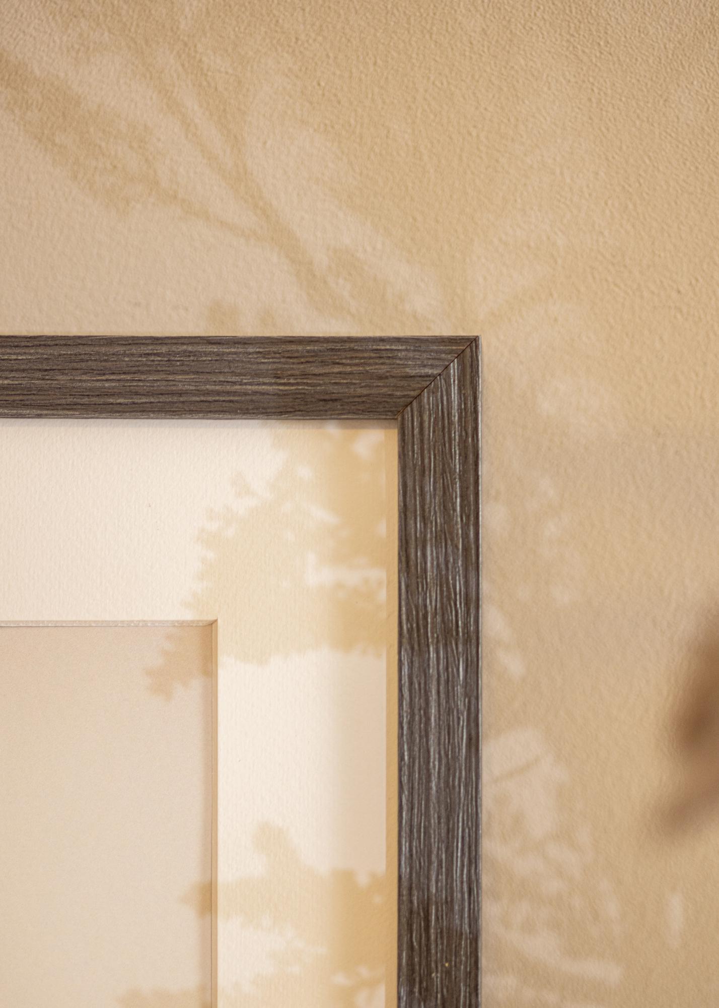 Wood Selection Grey I ist ein maßgefertigter Bilderrahmen, der eine perfekte Kombination aus Stil und Funktionalität bietet. Mit seiner grauen Farbe und dunkelbeizten Holzoberfläche verleiht dieser Fotorahmen Ihren Fotos und Kunstwerken eine anspruchsvolle Note. Die natürliche Maserung des Holzes verläuft entlang der Kanten und schafft eine visuelle Dynamik, die das Auge einfängt.