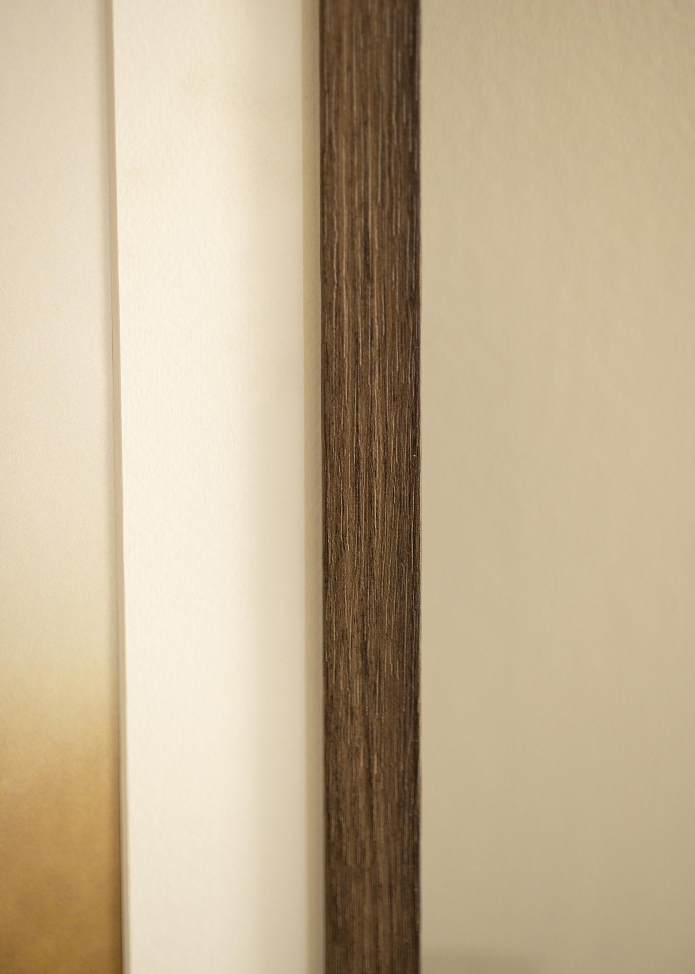 Der Rahmen hat eine 21 mm breite Leiste und eine Tiefe von 38 mm, was ein stabiles und robustes Gefühl vermittelt, ohne das Motiv zu überdecken. Die geraden Kanten und das schlanke Profil tragen zu einem modernen und eleganten Design bei, das sich leicht in verschiedene Einrichtungsstile einfügt. Die subtilen Farbschattierungen in der Maserung fügen zudem Tiefe und Variation hinzu, was jeden Bilderrahmen einzigartig macht.