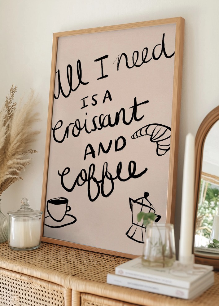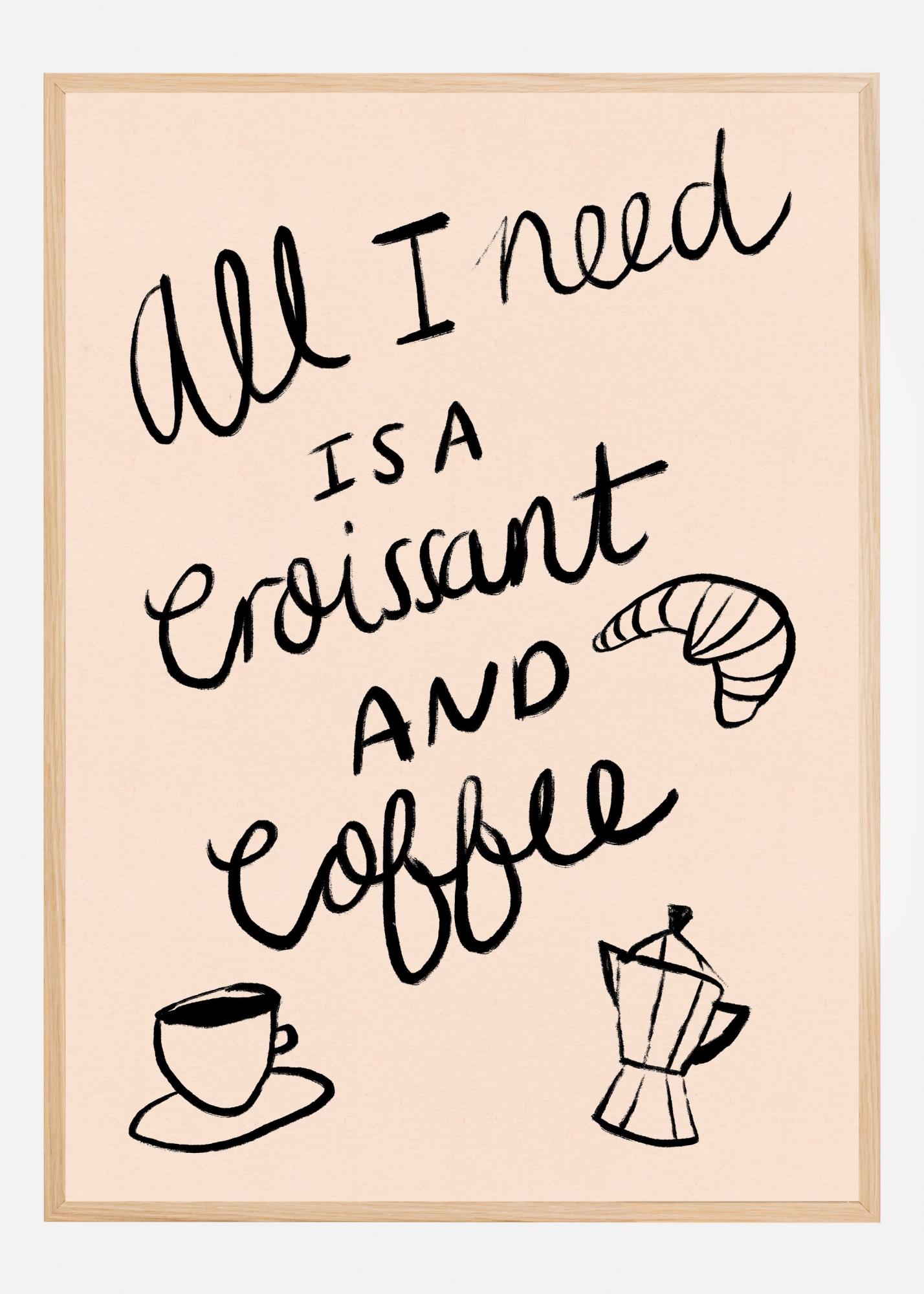 All I need is a Croissant and Coffee Typography Poster