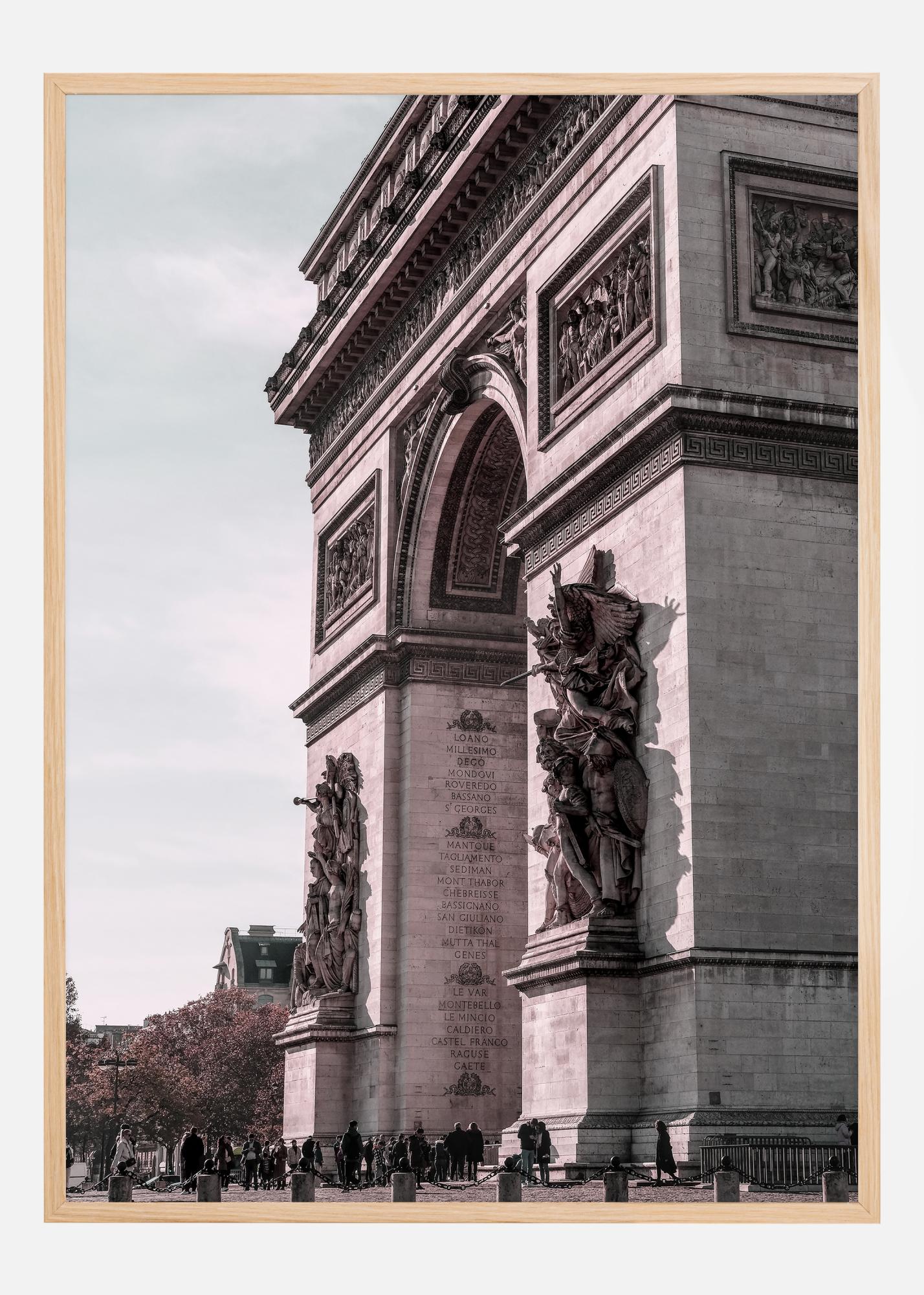 Dieses elegante Poster hebt die majestätische und detailreiche Architektur des Triumphbogens in Paris hervor. In diesem einzigartigen Druck wird die Größe und Detailfülle des berühmten Wahrzeichens eingefangen, von den mächtigen Skulpturen, die seine Säulen zieren, bis hin zu den feinen Verzierungen und Inschriften, die von seiner historischen Bedeutung erzählen. Mit einem sanften Rosaton, der eine warme Atmosphäre schafft, ist dieses Bild eine Hommage an die französische Geschichte und Architektur und wird zu einer kultivierten Ergänzung jeder Kunst- und Posterkollektion.