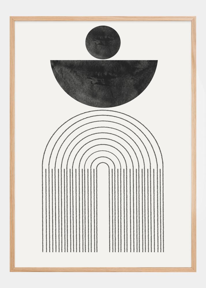 Dieses kühne und suggestive Poster ist eine stilvolle Interpretation der Mondzyklen und der Harmonie der Himmelskörper. Der schwarze Halbkreis und der volle Kreis oben illustrieren die verschiedenen Phasen des Mondes, während die geschwungenen Linien darunter an architektonische Säulen oder Portale zu einer anderen Dimension erinnern. Der Schwarz-Weiß-Kontrast des Kunstwerks verleiht jedem Raum ein Gefühl von Eleganz und Mystik.