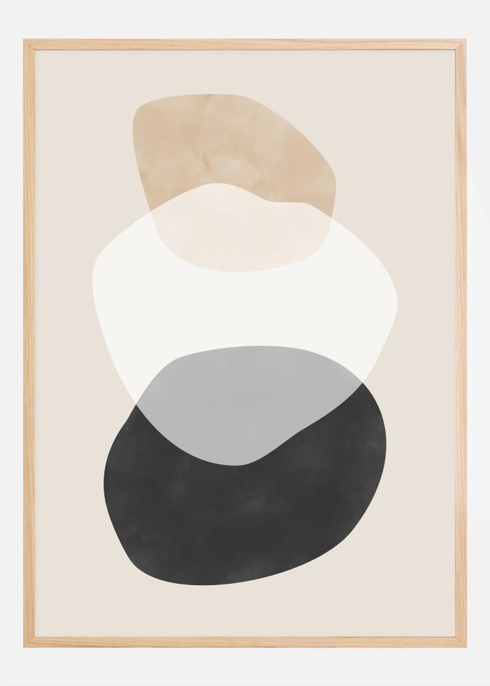Dieses künstlerische Poster strahlt eine ruhige und moderne Ästhetik aus, die perfekt in ein zeitgenössisches Zuhause oder Büro passt. Mit einem minimalistischen Design, das aus sich überlappenden abstrakten Formen besteht, bietet dieses Motiv ein harmonisches Gleichgewicht zwischen weichen Konturen und subtilen Farbkontrasten. Die Farbpalette umfasst Töne von Beige, Creme, Grau und tiefem Schwarz, was einen dezenten, aber dennoch mutigen Ausdruck an der Wand schafft. Das einfache, aber wirkungsvolle Kunstwerk ist eine feinsinnige Repräsentation skandinavischen Designs, ideal, um in jedem Raum eine entspannende Atmosphäre zu schaffen.
