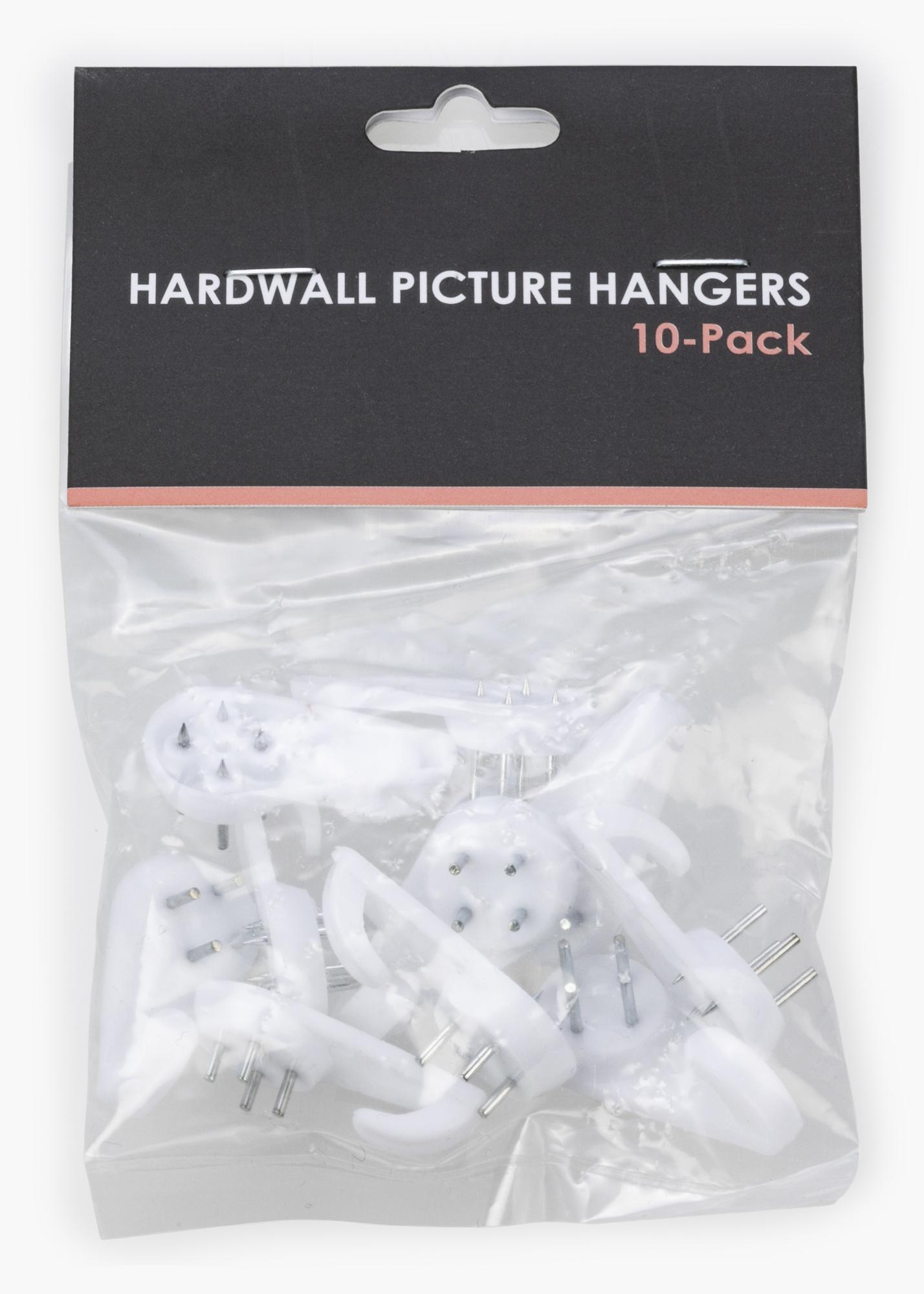 Kleinerer Wandhaken für Bilderrahmen oder Wanddekoration im 10er-Pack für Betonwände. Kein Bohren oder mühsames Hantieren mit Dübel und Schraube. Geeignet für leichtere Bilderrahmen oder Wanddekoration.