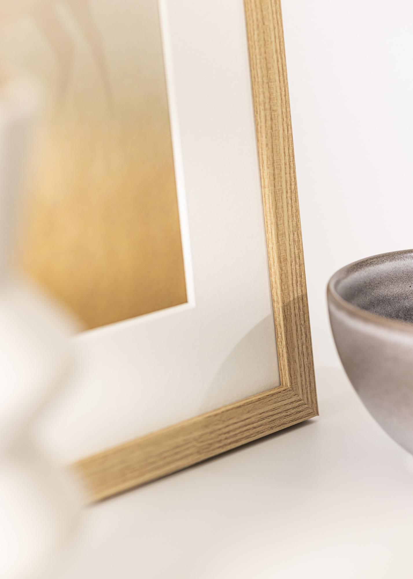 Der Rahmen hat eine 18 mm breite Leiste und eine Tiefe von 18 mm, was ihm ein robustes und stabiles Gefühl verleiht. Die scharfen, präzisen Ecken und das gleichmäßige Finish tragen zu einem gut gemachten und durchdachten Ausdruck bei. Dieser Bilderrahmen ist auf der Rückseite mit Metallaufhängern ausgestattet, wodurch er einfach sowohl horizontal als auch vertikal aufgehängt werden kann, je nachdem, was am besten zu Ihrem Motiv passt.