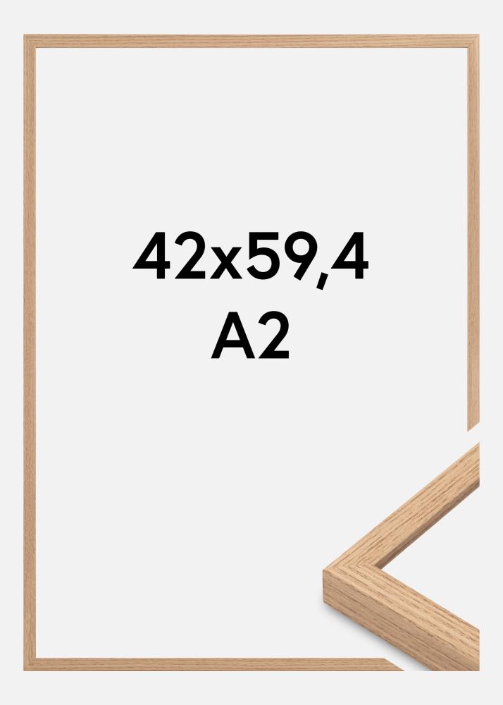 Dieser stilvolle Bilderrahmen in eichenfarbener Ausführung ist perfekt, um Ihre Lieblingsmotive hervorzuheben. Mit einer Größe von 42x59,4 cm (A2) eignet er sich hervorragend für größere Bilder oder Poster. Die helle Eichenimitation des Rahmens vermittelt ein warmes und natürliches Gefühl, was ihn zu einer ausgezeichneten Wahl für die meisten Einrichtungsstile macht. Die dezente Holzstruktur und die leichte Maserung ahmen echtes Eichenholz nach, wodurch ein lebendiger und harmonischer Eindruck entsteht.