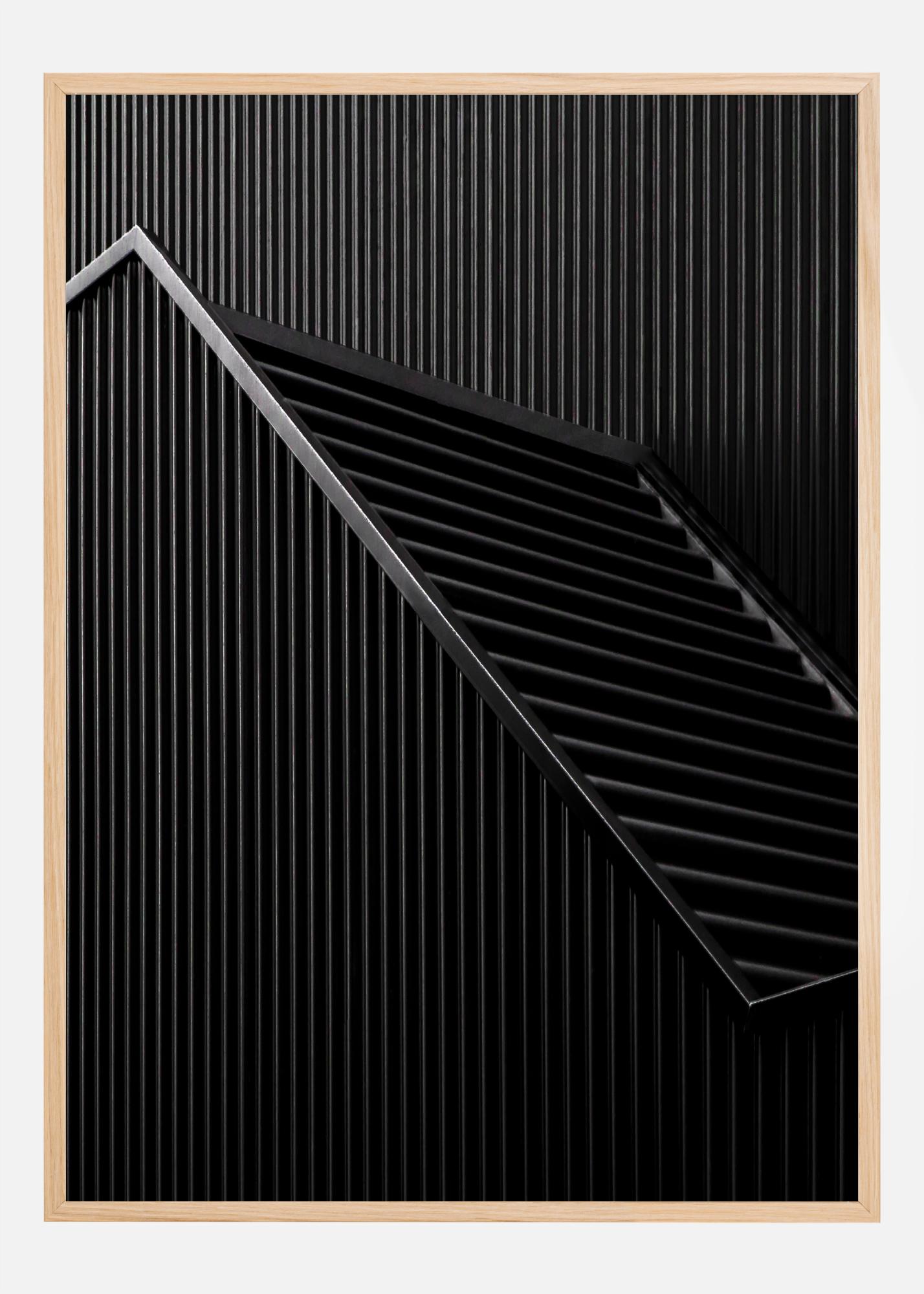 Ein geometrisches Poster einer Treppe oder einer Dachterrasse an einer Wand. Diese Schwarz-Weiß-Aufnahme wirkt fast wie ein Gemälde von Escher. Folgen Sie den Linien der Holzmaserung, die sich in verschiedenen Winkeln um das Bild herum kreuzen, und lassen Sie sich von dem Anblick verzaubern. Ein dramatischer Effekt entsteht, wenn Sie es an einer weißen Wand anbringen.