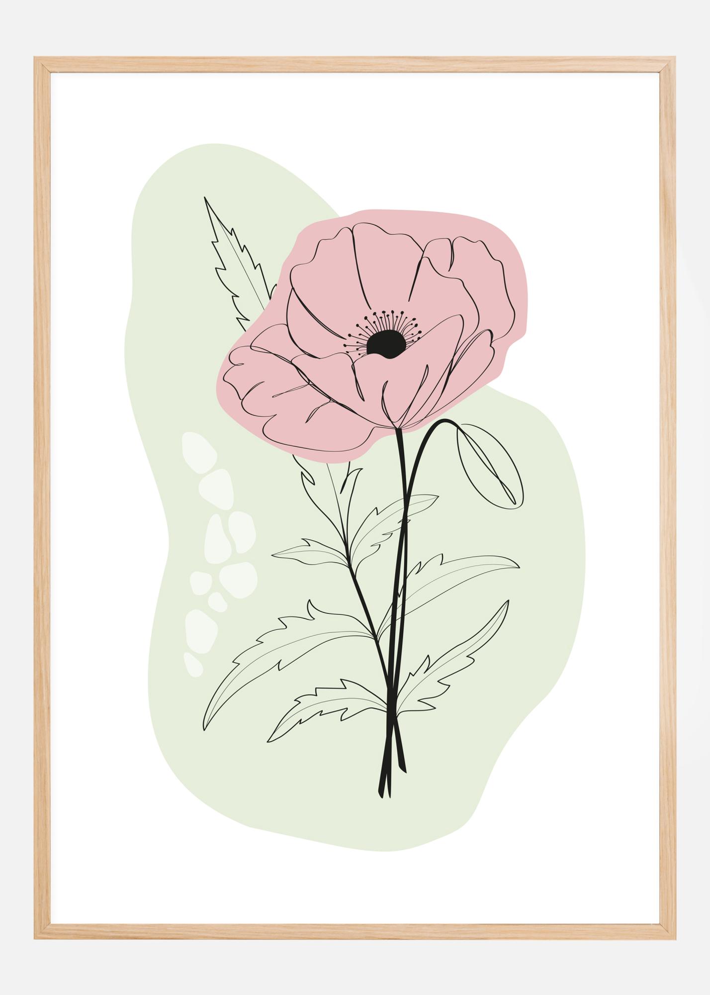 Ein abstraktes Poster eines roten Mohnblumendrucks. Elegante schwarze Linien bilden dieses einfache, aber wirkungsvolle Blumenbild. Die Blütenblätter und Blätter sind sorgfältig umrissen, und rote und grüne Farbabschnitte heben die Blume auf weißem Hintergrund hervor. Dieser geschmackvolle Blumendruck verleiht Ihrer Küche einen originellen Look.