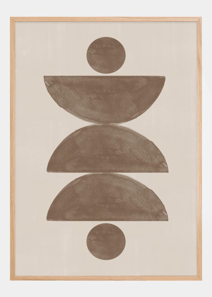 Dieses beruhigende und ästhetisch ansprechende Poster präsentiert ein harmonisches Stapeln weicher geometrischer Formen. Zwei Halbmonde in einem erdigen Braunton werden durch zwei volle Kreise ausgeglichen, die symmetrisch darüber und darunter platziert sind. Diese minimalistische Komposition bietet ein Gefühl der Ruhe und ist eine perfekte Darstellung des böhmischen Stils mit einem sanften und modernen Reiz.