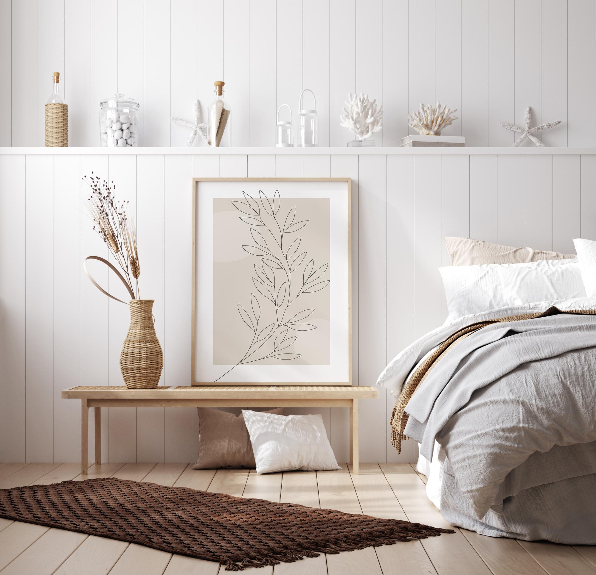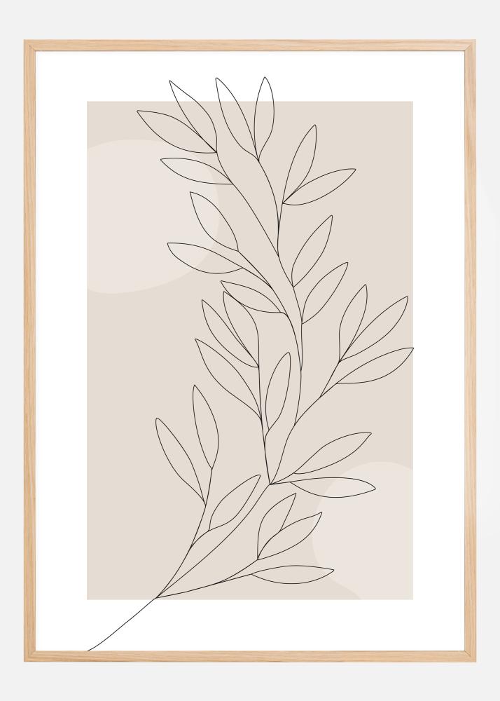 Ein einfaches Poster mit Blättern auf grauem Hintergrund. Folgen Sie der Kurve dieser einfachen Zeichnung eines Blätterzweigs, die Ihr Auge um das Bild herumführt. Ein hellgrauer Kreis ist die Sonne in diesem Bild in Grautönen. Fügen Sie einen hellen Hintergrund hinzu, um Farbe und Leben in dieses Werk zu bringen.