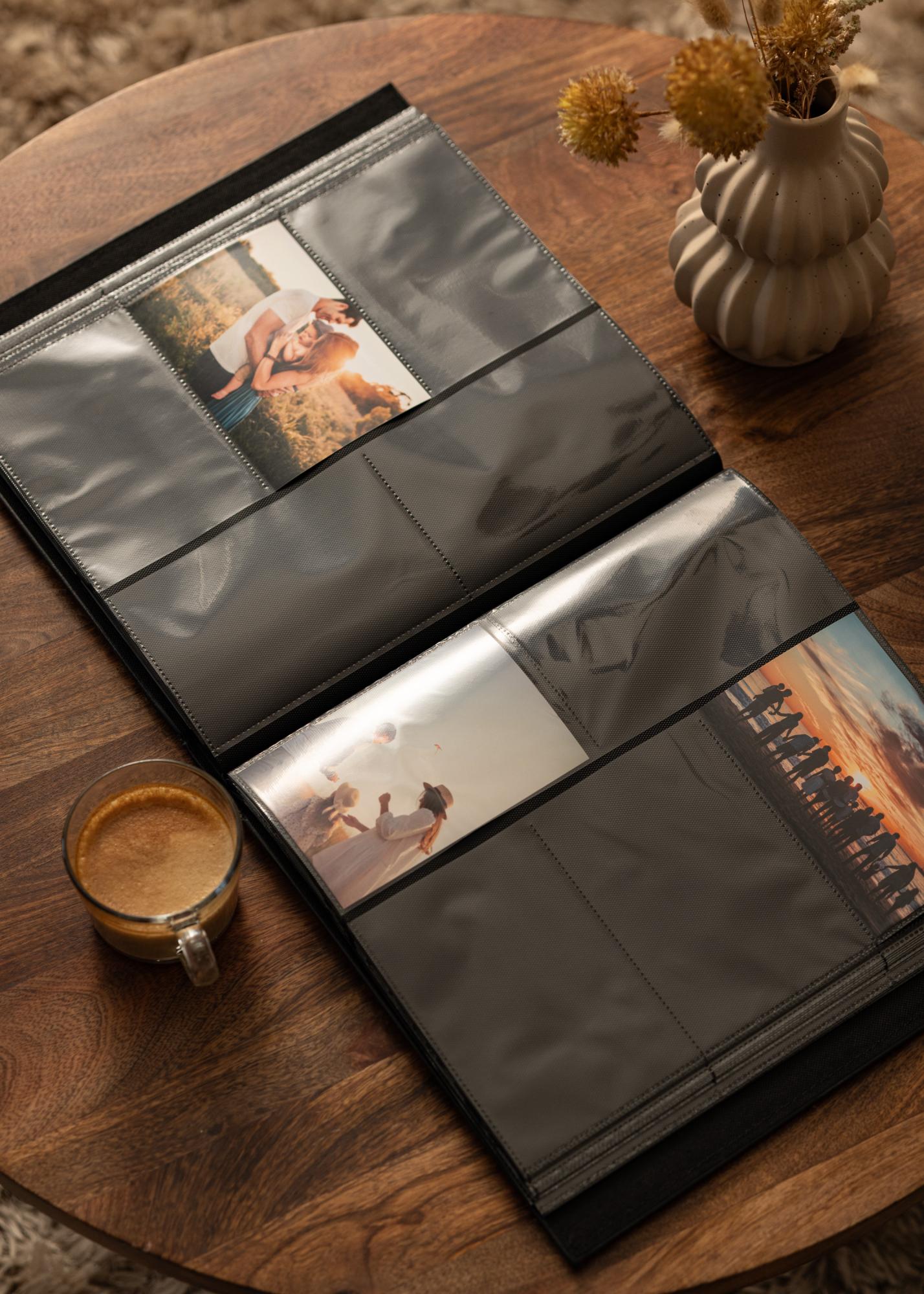 Das Besondere an diesem Fotoalbum sind seine praktischen Fototaschen, die das Einfügen und Austauschen von Bildern ohne Aufwand ermöglichen. Die Bildausrichtung im Album ist sowohl quer als auch hochkant, was Ihnen die Flexibilität gibt, Ihre Bilder genau so anzuordnen, wie Sie möchten. Die schwarzen Seiten schaffen einen schönen Kontrast zu Ihren bunten Fotos und heben jedes Bild auf die beste Weise hervor.