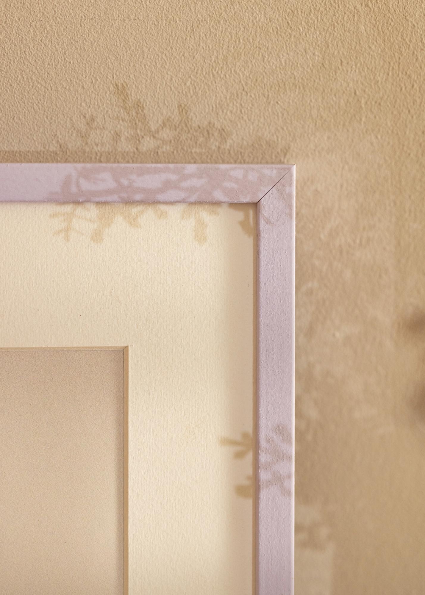 Dieser Bilderrahmen ist nicht nur eine Augenweide, sondern auch praktisch. Er ist mit robusten Metallaufhängungen auf der Rückseite ausgestattet, was es einfach macht, Ihren Rahmen sowohl horizontal als auch vertikal aufzuhängen. Egal ob Sie eine Landschafts- oder Portratausrichtung wünschen, Sie können die Präsentation an die Bedürfnisse Ihres Kunstwerks anpassen.