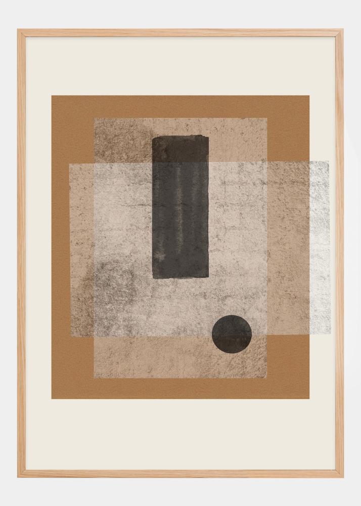 Dieses Poster ist eine Hommage an die Meister der abstrakten Kunst, deren Werke mit Form und Textur spielten, um Balance und Tiefe zu schaffen. Die überlappenden Rechtecke in Schattierungen von Braun, Schwarz und Grau erzeugen ein Gefühl von Raum und Dimension, während der einzelne Kreis eine subtile, aber kraftvolle Dynamik zur Komposition hinzufügt.