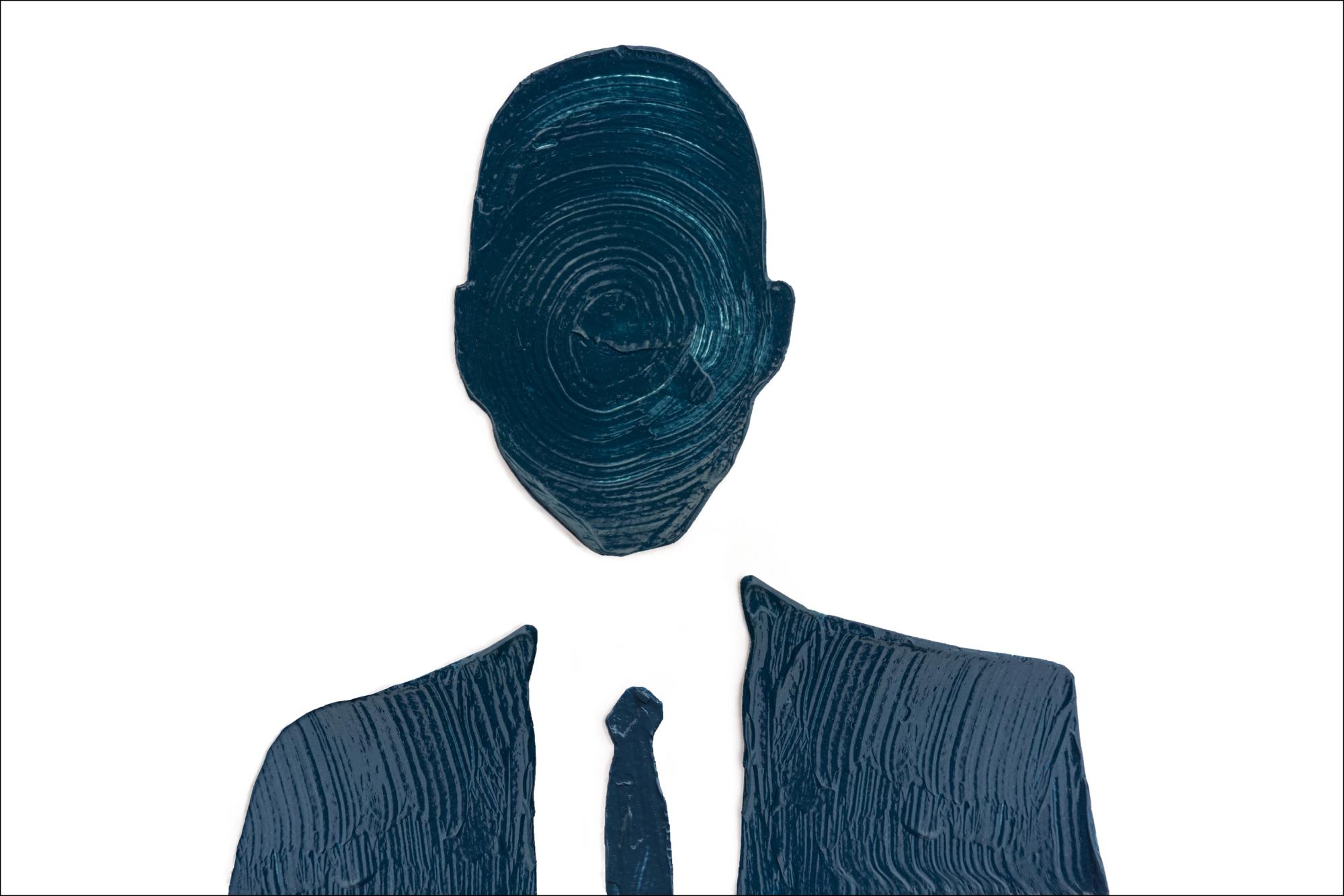 Ein impressionistisches Poster eines gesichtslosen Mannes. Hier sagen die leeren Flächen ebenso viel aus wie die gefüllten, denn die Form des Mannes wird mit dicken, strukturierten blauen Pinselstrichen geschaffen. Er hat kein Gesicht, sondern etwas, das wie ein Fingerabdruck aussieht. Bestaunen Sie die Vorstellungskraft in diesem Werk.