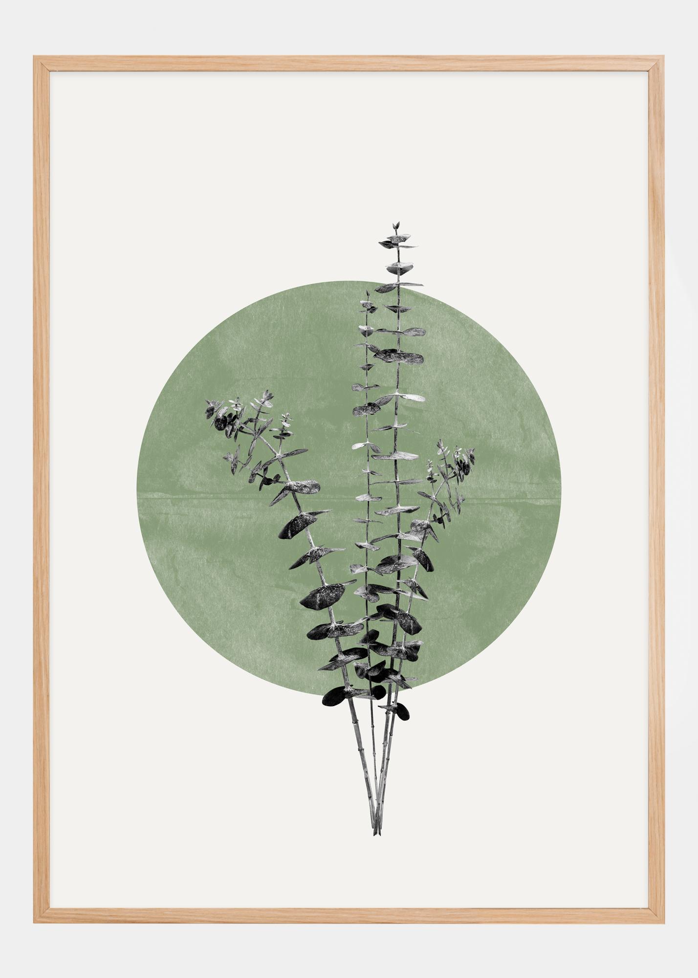 Verschönern Sie Ihr Zimmer mit einem Poster, das die subtile Schönheit der Natur vor einem beruhigenden grünen Hintergrund darstellt, der an einen Mond erinnert. Dieses Poster zeigt die markante Silhouette des Eukalyptus, dessen detaillierte Blätter und Zweige lebendig gegen den sanften grünen Kreis wirken. Das Design würdigt die schlichte Ästhetik der Natur und schafft ein entspannendes Element in Ihrer Einrichtung.