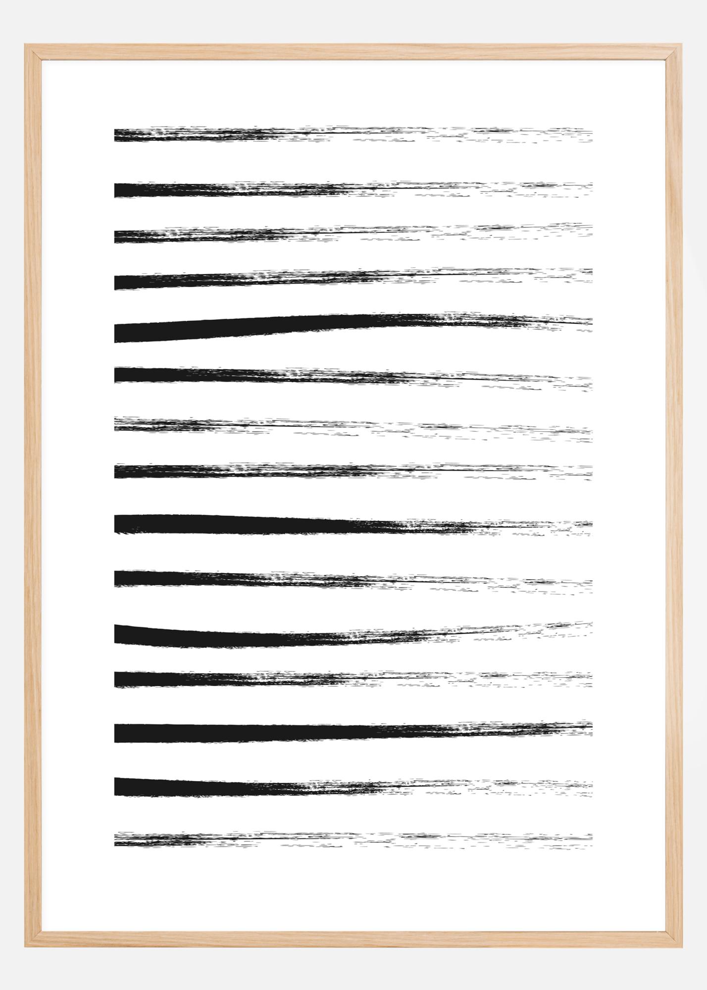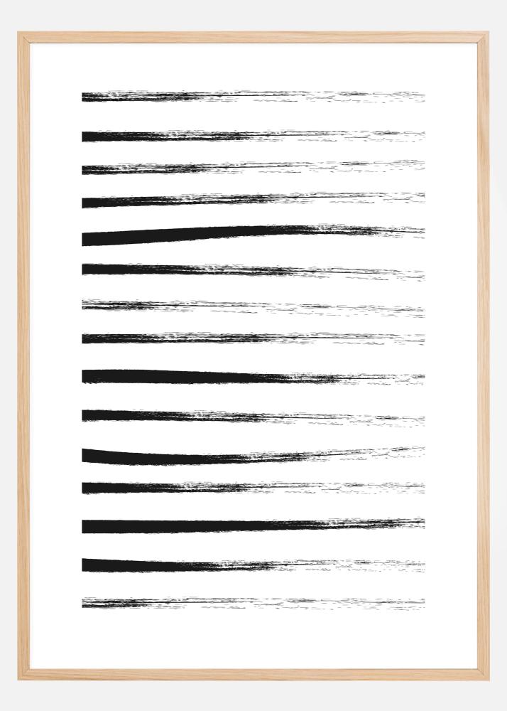 Ein elegantes Poster mit schwarzen Linien. Die Linien beginnen als dicke schwarze Striche auf der linken Seite und verlaufen nach rechts, wo der Pinselstrich endet. Dieses malerische Werk würde an einer Wand mit kräftigen Farben hervorragend aussehen, damit die Linien richtig zur Geltung kommen.