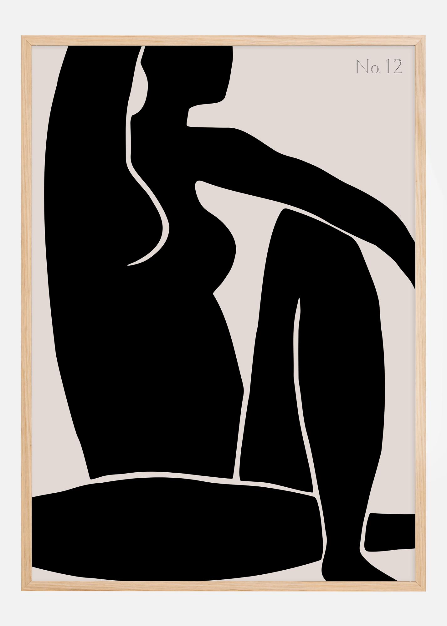 Der Kontrast zwischen der schwarzen Figur und dem hellen Hintergrund ist nicht nur kühn, er illustriert auch das Aufeinandertreffen von Licht und Schatten, Form und Leere, was einen starken grafischen Effekt erzeugt. 'No. 12' ist ein Poster, das ebenso sehr ein modernes Kunsterlebnis wie ein Einrichtungselement ist und perfekt für diejenigen geeignet ist, die eine zeitgenössische Ästhetik mit einem Hauch von Dramatik suchen. Es ist ideal für minimalistische oder monochrome Einrichtungsstile, wo es als starke solitäre Akzentuierung stehen kann oder mit anderen ähnlichen Werken kombiniert wird, um eine beeindruckende Bilderwand zu schaffen.