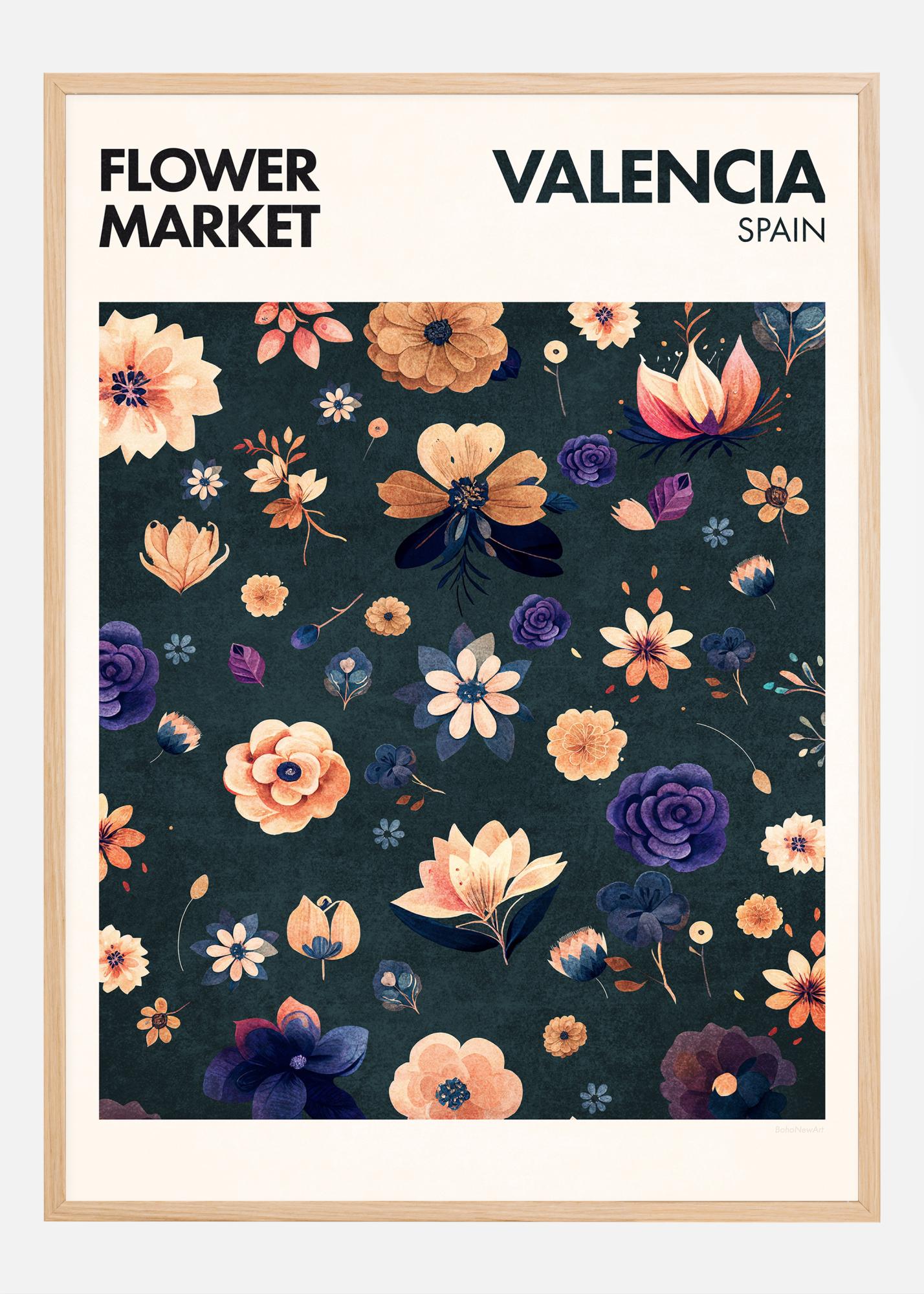 Dieses farbenfrohe und lebendige Poster zeigt die Blumenpracht des Blumenmarkts von Valencia in Spanien. Das detailreiche Motiv ist eine Hommage an die Vielfalt der Blumen des Marktes, bei der jede Sorte und Farbe in voller Blüte eingefangen zu sein scheint. Von den zarten Pastelltönen bis hin zu den kräftigen, satten Farben fängt das Design das Gefühl einer üppigen Oase im Herzen der Stadt ein.