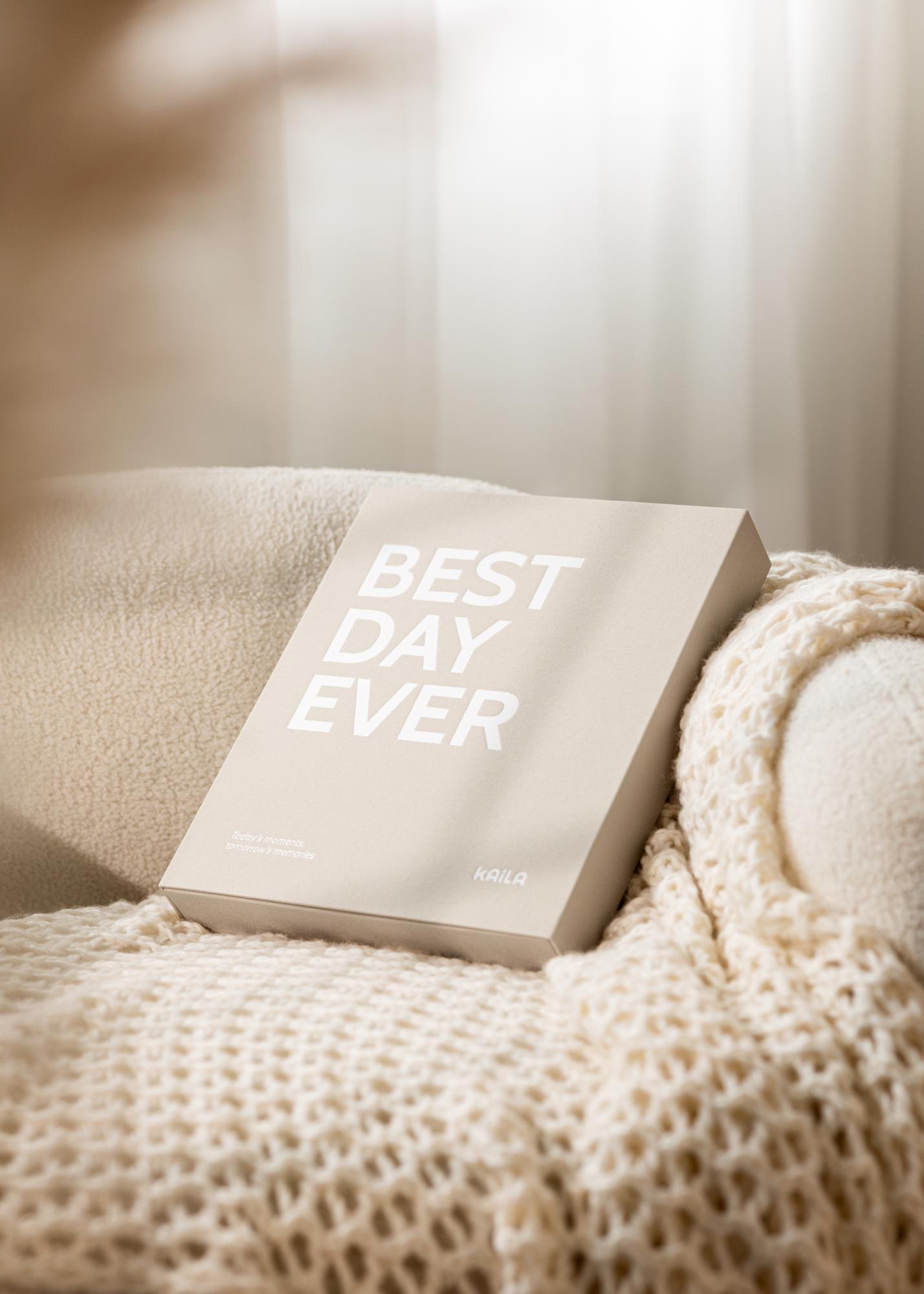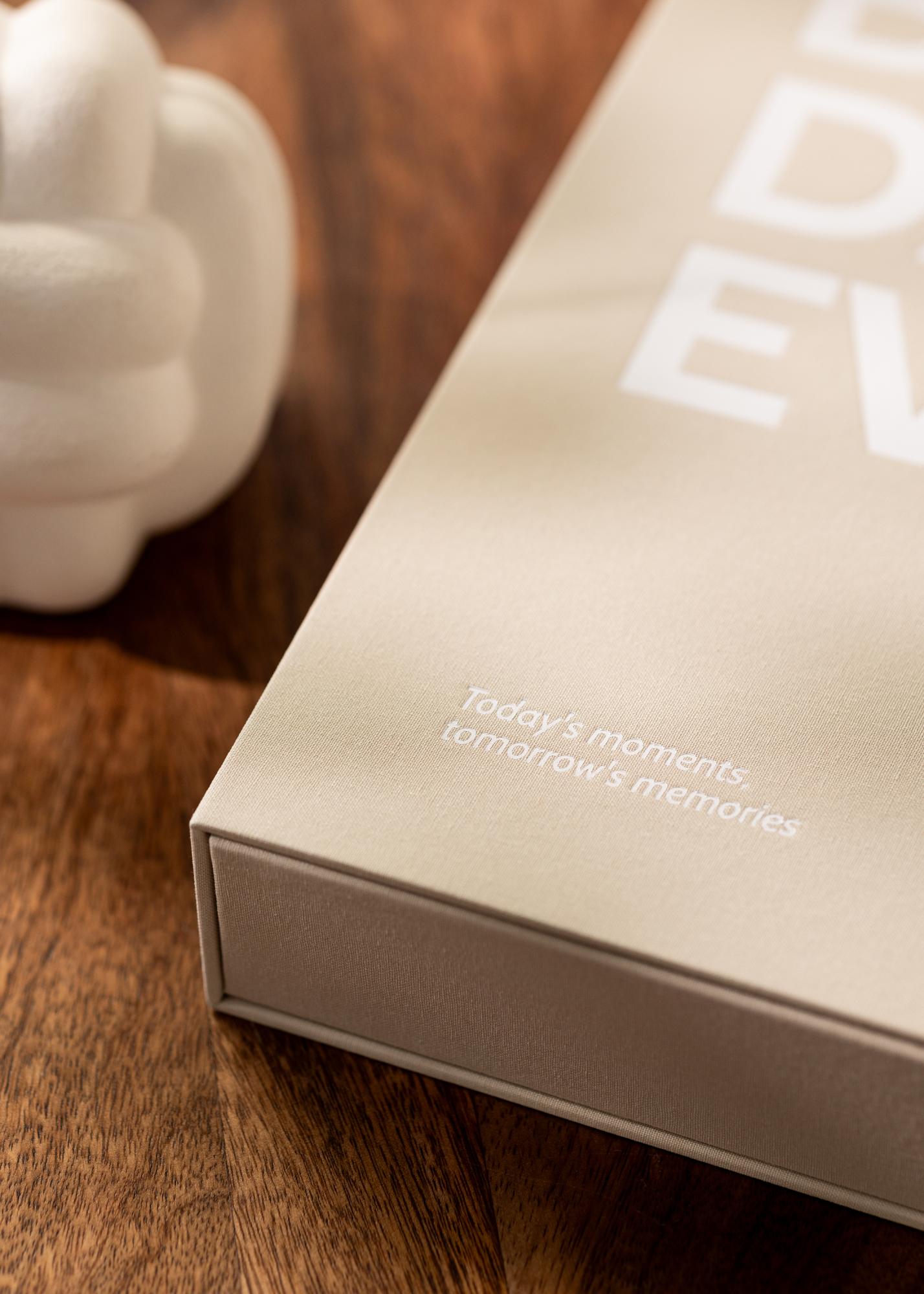 Entdecken Sie KAILA BEST DAY EVER Creme - ein elegantes und stilvolles Fotoalbum, das als wunderschönes Einrichtungsdetail auf Ihrem Couchtisch entworfen wurde. Mit seinen beigen Einbänden und schwarzen Seiten wird dieses Album zu einem auffälligen Coffee Table Book, das Sie stolz in Ihrem Zuhause präsentieren können.