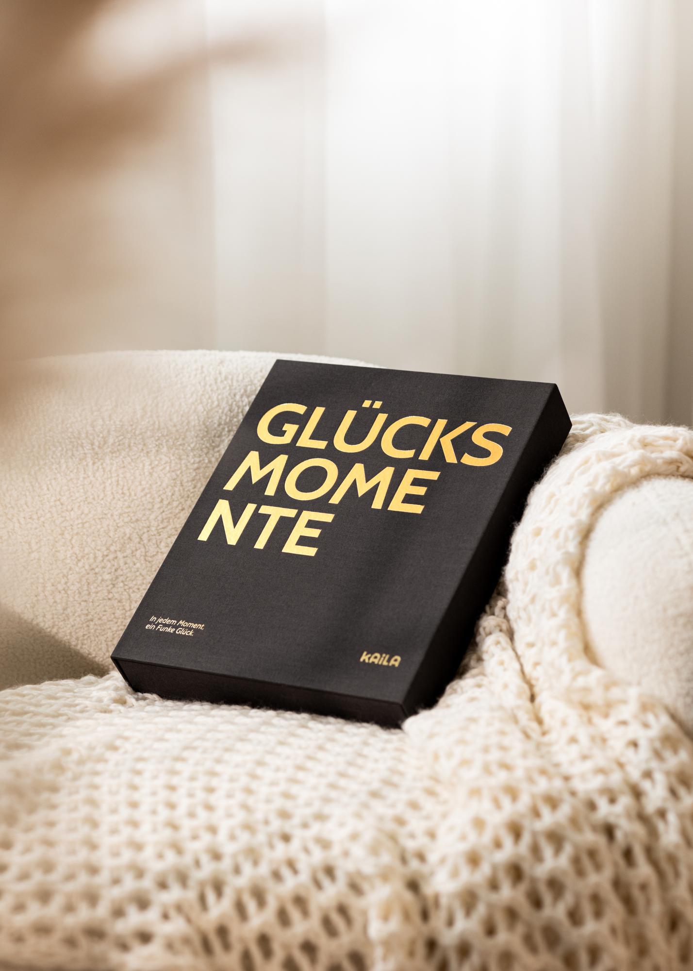 KAILA GLÜCKSMOMENTE Schwarz ist ein elegantes und stilvolles Fotoalbum, das als schönes Coffee Table Book gestaltet ist. Mit seinen beigen Einbänden und schwarzen Seiten wird dieses Album zu einem auffälligen Detail in Ihrem Zuhause, perfekt zum Herumliegen, damit sowohl Sie als auch Ihre Gäste darin blättern können.