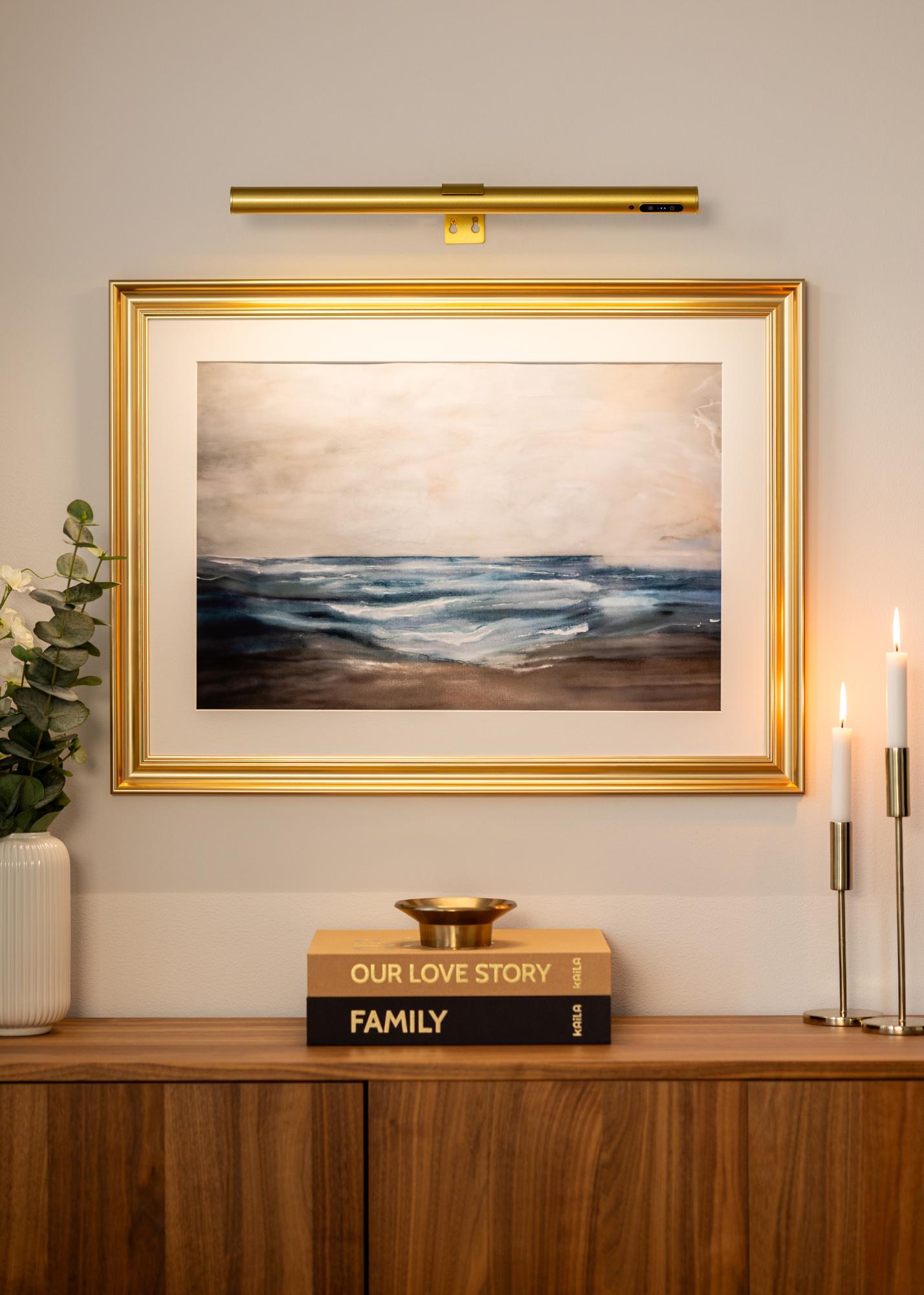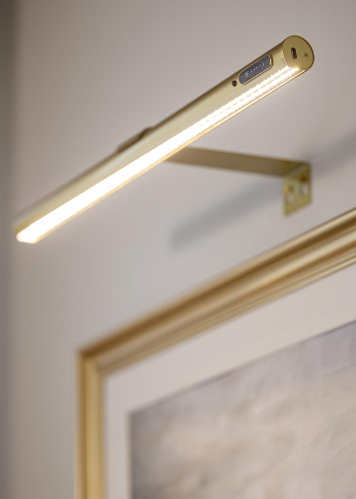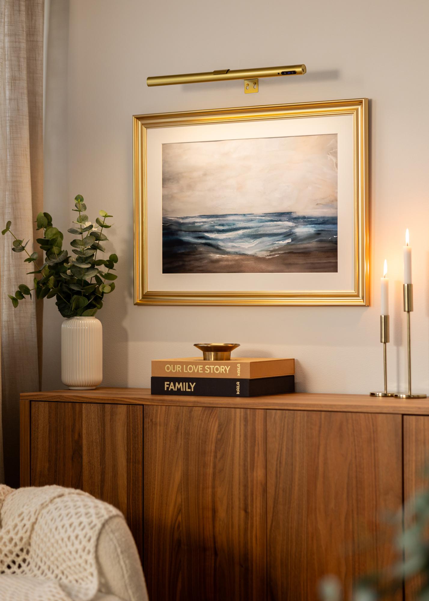 KAILA Halo ist eine stilvolle und batteriebetriebene Bilderbeleuchtung in Gold, perfekt, um Ihre Kunstwerke ohne störende Kabel zu beleuchten. Dank des kabellosen Designs können Sie sie überall platzieren, ohne auf Steckdosen achten zu müssen. Die elegante Goldoberfläche verleiht einen exklusiven Ausdruck, während das Licht gleichmäßig verteilt wird, um Details und Farben auf schöne Weise hervorzuheben. Einfach zu montieren und leicht zu bedienen – eine praktische Lösung, um Ihren Bildern die Aufmerksamkeit zu schenken, die sie verdienen.