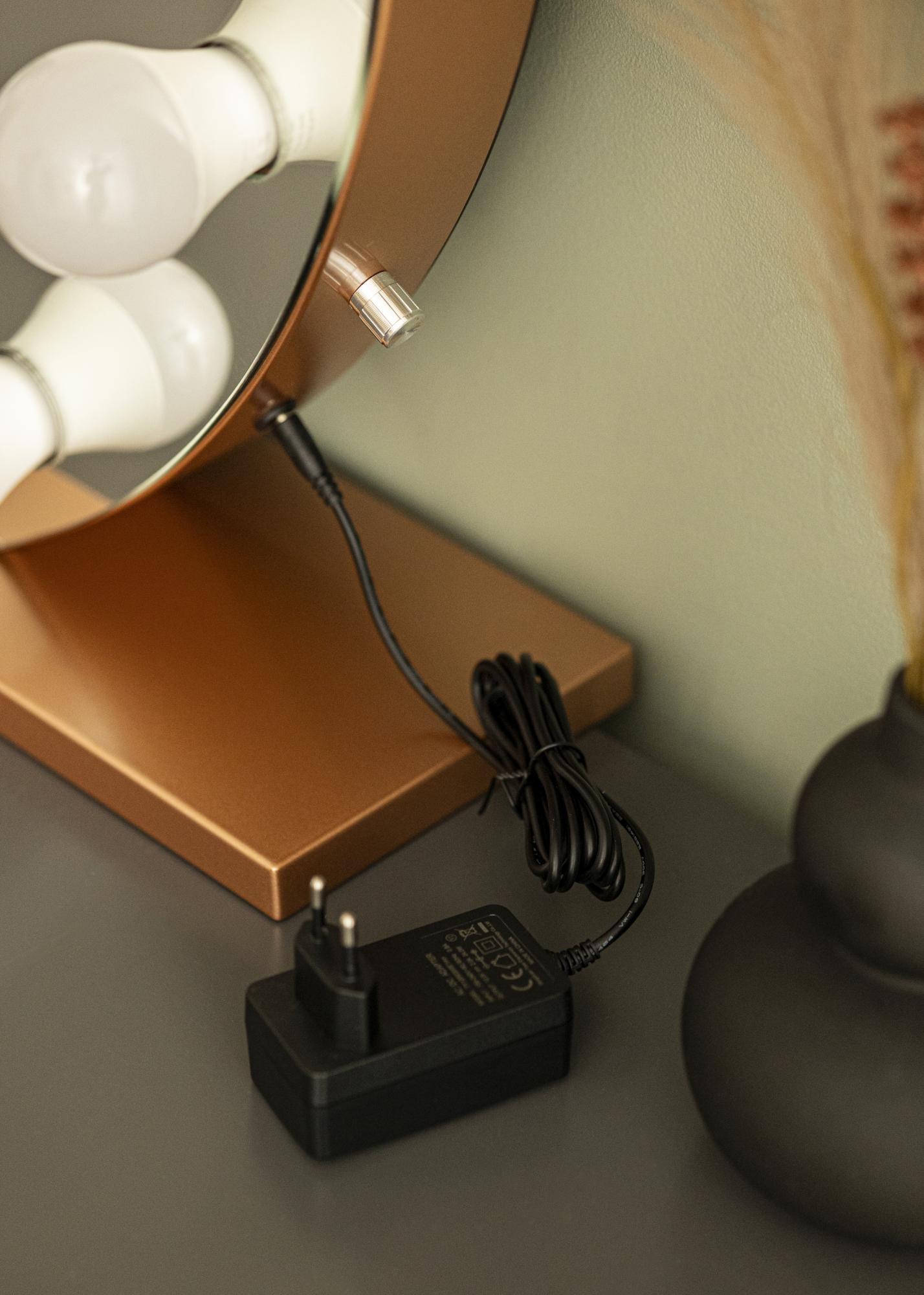Lass diesen hübschen Schminkspiegel in Roségold dein Zuhause verschönern! Die 10 Glühlampen des Spiegels, die wie ein Rahmen rund um die Spiegelfläche angeordnet sind, geben ein kaltweißes Licht ab. Dank der praktischen Dimmer-Funktion kann die Lichtstärke nach Belieben eingestellt werden. Hierfür einfach am Drehschalter, der sich an einer kurzen Seite des Spiegels befindet, drehen.