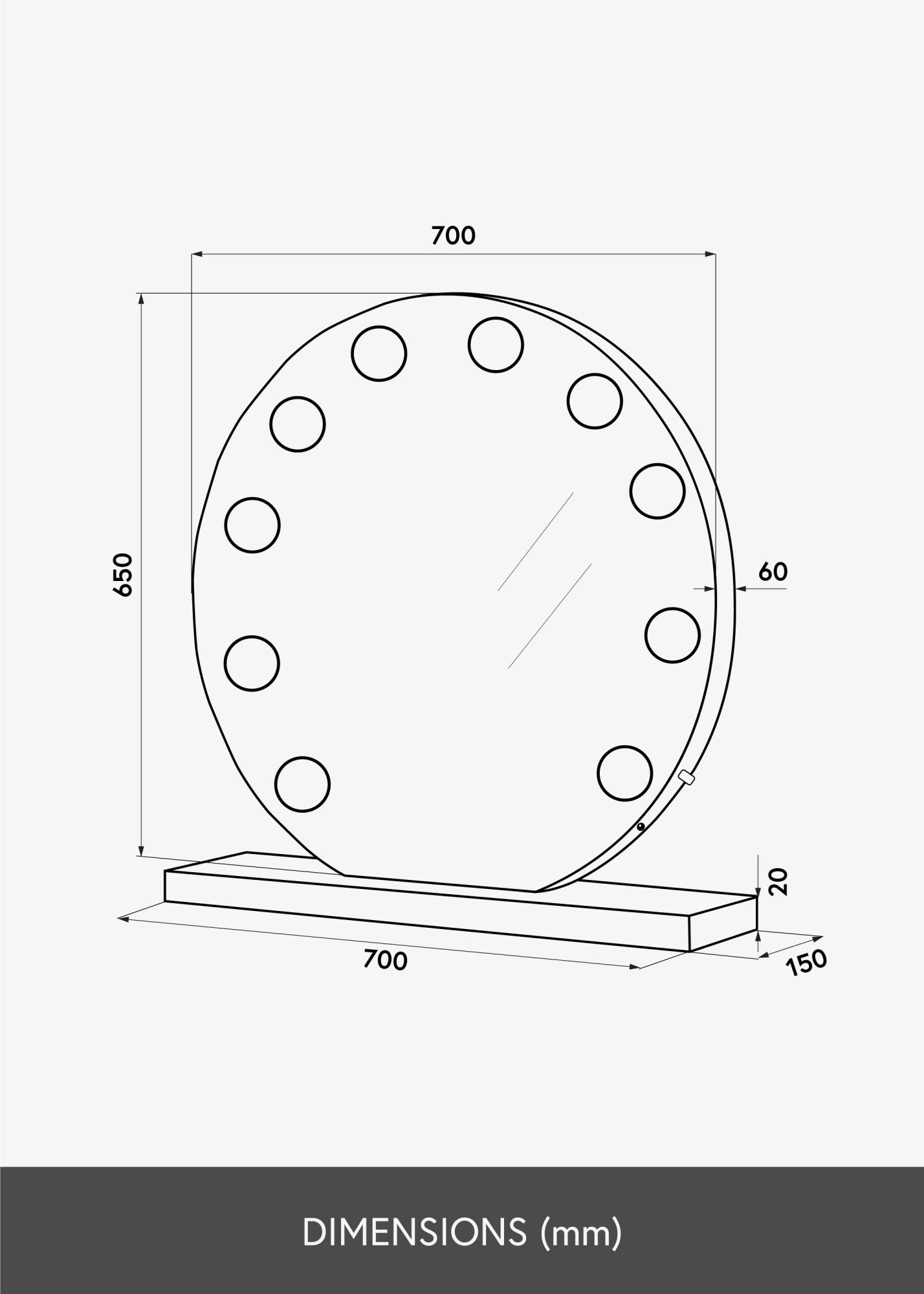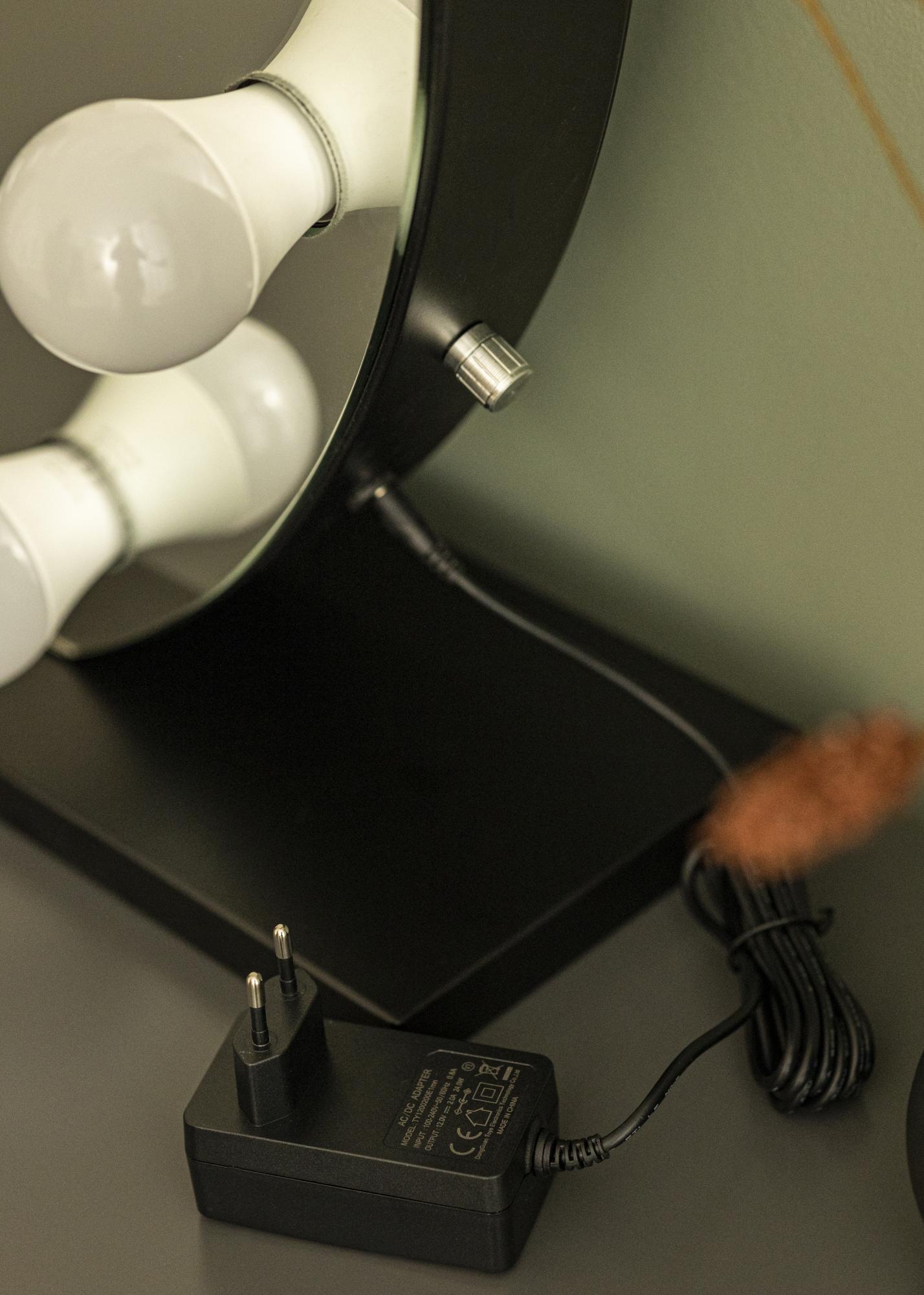 Dieser dekorative Kosmetikspiegel bietet ansprechendes Design, Stil und Funktion in absolut gelungener Kombination! Die stilvolle Formgebung mit Rahmen und Standfuß in Schwarz, die 10 Glühlampen mit E27-Fassung, die den Rahmen schmücken, tragen das ihre zu dem ansprechenden Charakter dieses Schminkspiegels bei. Die integrierte Beleuchtung mit der kaltweißen Farbtemperatur ist optimal, um sich für den Tag hübsch machen. Der Spiegel kann aufgestellt werden und macht sowohl in Wohn- oder Schlafzimmer, Flur oder Ankleideraum eine tolle Figur. Ob in seiner Funktion als Spiegel oder einfach als besondere Art der Hintergrundbeleuchtung, dieser Kosmetikspiegel macht ein tolles Wohnaccessoire aus, das jede Wohneinrichtung verschönern kann. Die Beleuchtung ist dimmbar. Um das Licht zu dimmen, einfach am Drehschalter, der sich auf einer der kurzen Seiten des Spiegels befindet, drehen.