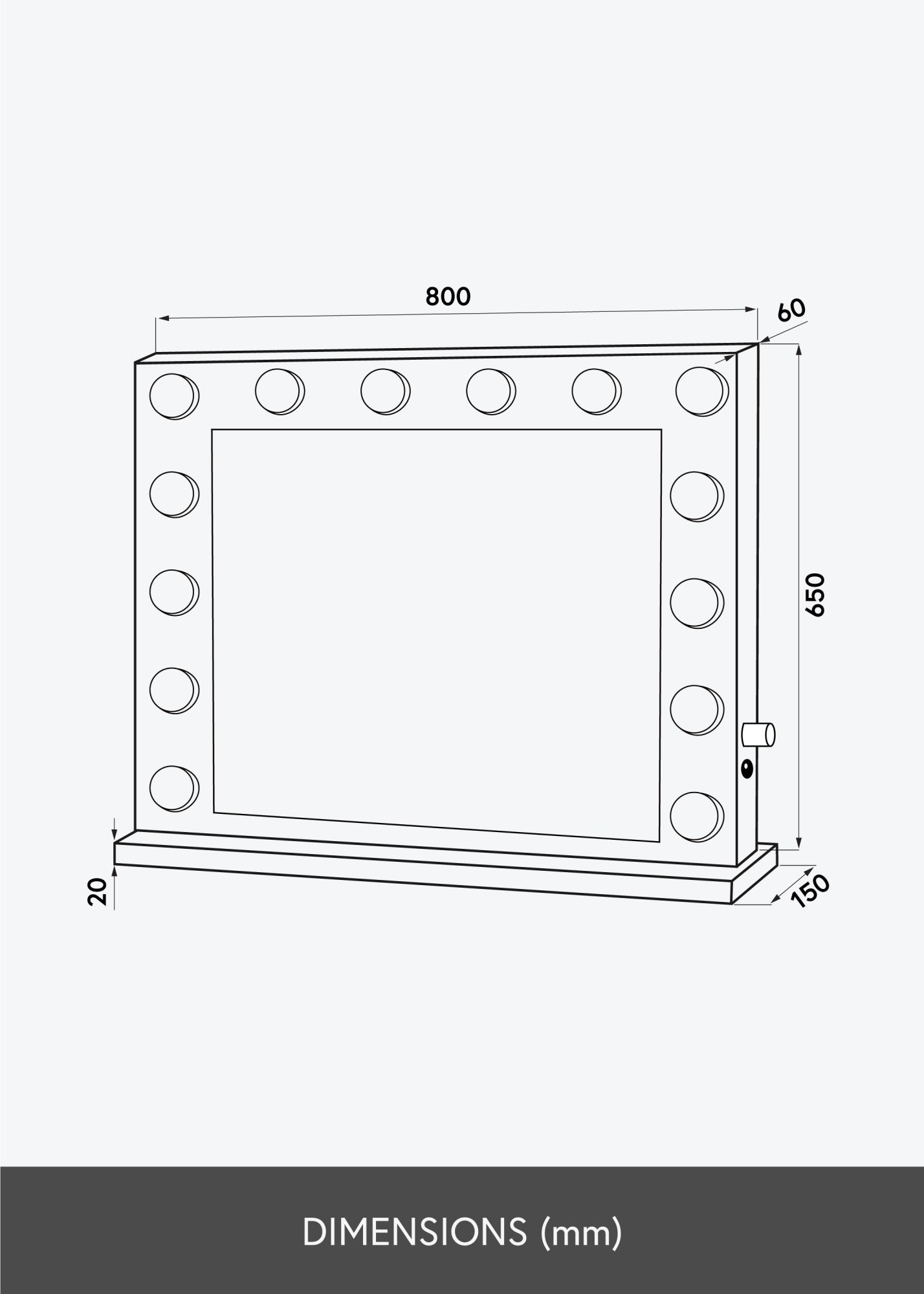 Dieser LED-Kosmetikspiegel wirkt dank des von Hollywood inspirierten Designs, dem breiten Rahmen in Roségold und den 14 großen LED-Lampen sehr elegant und äußerst schick. Die LED-Glühlampen mit E27-Fassung können bei Bedarf einfach ausgetauscht werden. LED als Lichtquelle ist eine haltbare, energiesparendere Alternative. Die LED-Lampen geben ein kaltweißes Licht ab, die Beleuchtung kann mit Hilfe des Drehreglers am Spiegelrand einfach gedimmt werden.
