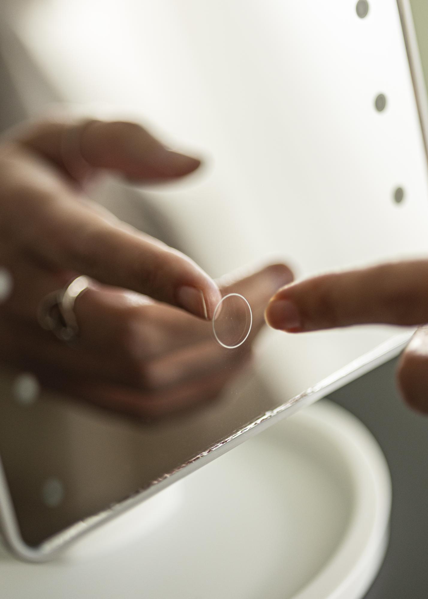 Die Beleuchtung des Spiegels besteht aus Leuchtdioden (LED). Die Leuchtmittel sind nicht austauschbar, haben jedoch eine Lebensdauer, die dem Lebenszyklus des Produkts entspricht. Nach 50.000 Stunden wird die Lichtstärke schätzungsweise auf ca. 50 % der ursprünglichen Stärke reduziert sein.