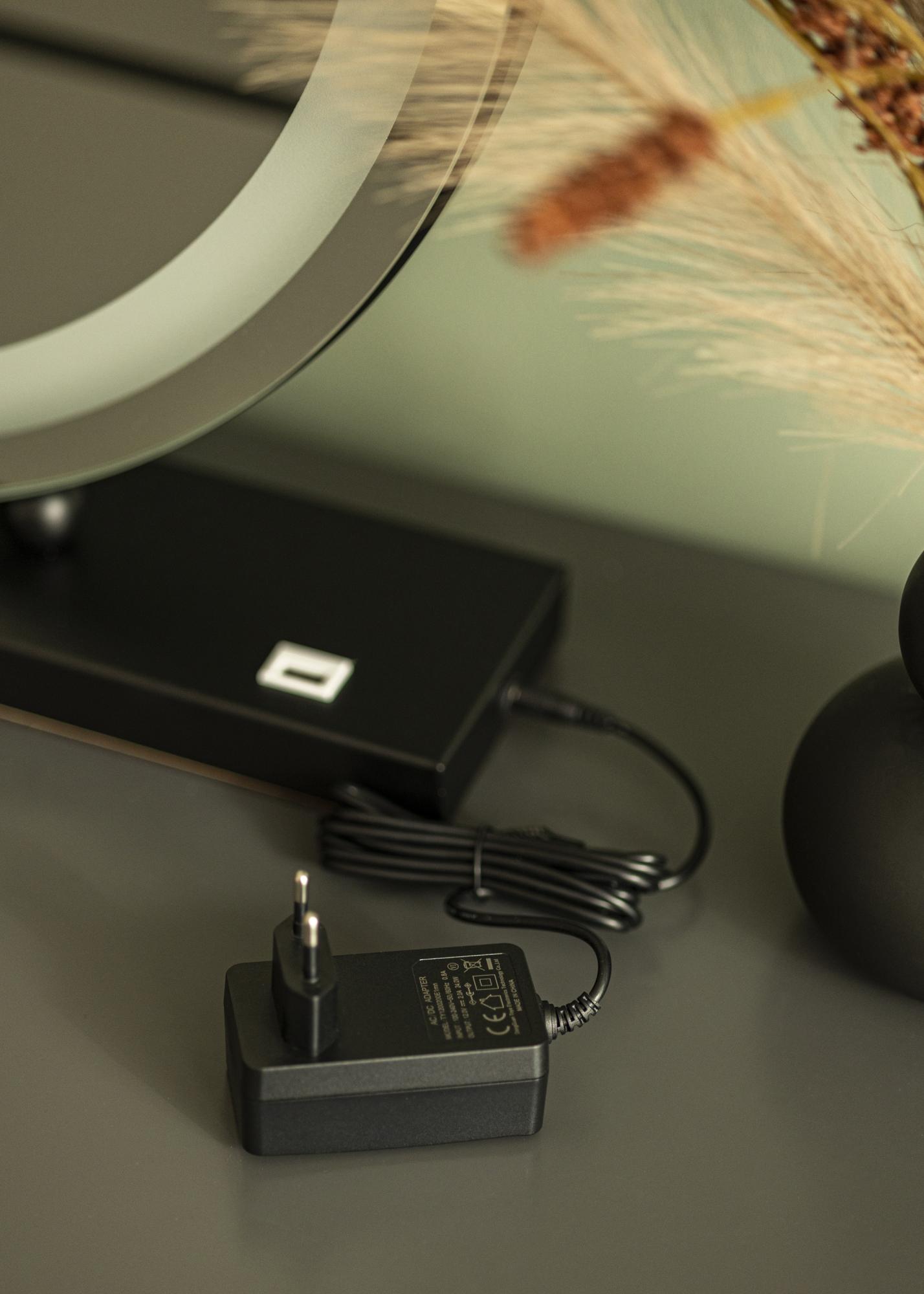 Am Standfuß des Spiegels befindet sich ein USB-Anschluss zum Laden von Smartphones. Super praktisch!