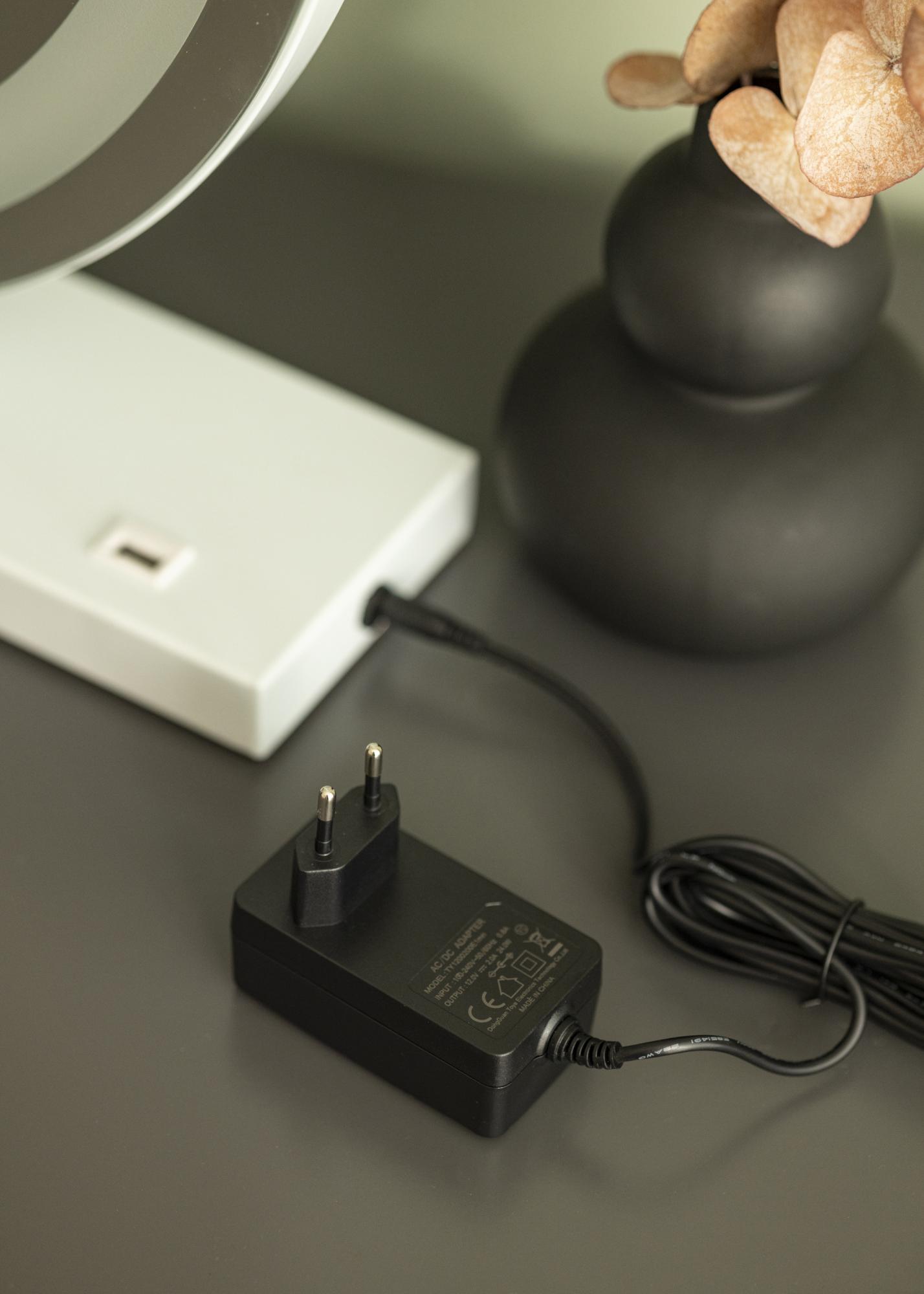 Dieser hübsche Make-Up Spiegel zeichnet sich durch eine weitere Finesse aus, denn er ist mit einem USB-Anschluss zum Aufladen von Smartphones ausgestattet. So kannst du, während du dich schminkst, dein Handy direkt am Spiegel aufladen und hast das Telefon auch dann bei dir, wenn du dich für den Tag zurechtmachst. Der LED-Spiegel wird mit einem Stecker an den Strom angeschlossen.