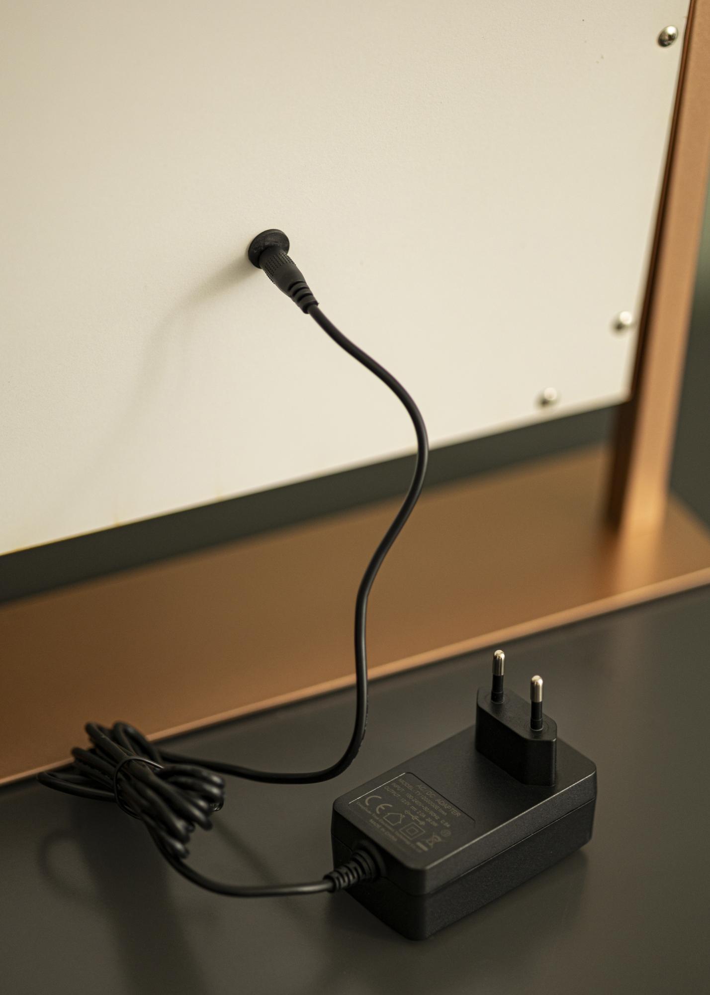 Ein eleganter Spiegel mit Beleuchtung ist ein trendiger Einrichtungsgegenstand und gleichzeitig ein funktionelles Hilfsmittel, das beim Schminken und Auftragen von Make-Up sowie bei der Morgentoilette unverzichtbar ist. Dieser schöne LED-Spiegel zeichnet sich durch seine stilechte Metallkonstruktion in einer hübschen Nuance von Roségold sowie dem integrierten LED-Band, das wie ein leuchtender Rahmen seitlich und oben um die Spiegelfläche verläuft, aus. Der Lichtspiegel kann einfach ein- und ausgeschaltet werden. Die Beleuchtung kann mit Hilfe der Touch-Tasten im unteren Beriech des Spiegels je nach Bedarf eingestellt werden. Hier befindet sich eine Taste zum Ein- und Ausschalten sowie eine Taste zum Dimmen, also zum Einstellen der Lichtstärke, die mit einem „P“ markiert ist, und eine weitere Taste, markiert mit „M“, die der Auswahl der Farbtemperatur bzw. der Lichtfarbe dient. Hier kann zwischen warmem, kaltem und natürlichem Licht gewählt werden.