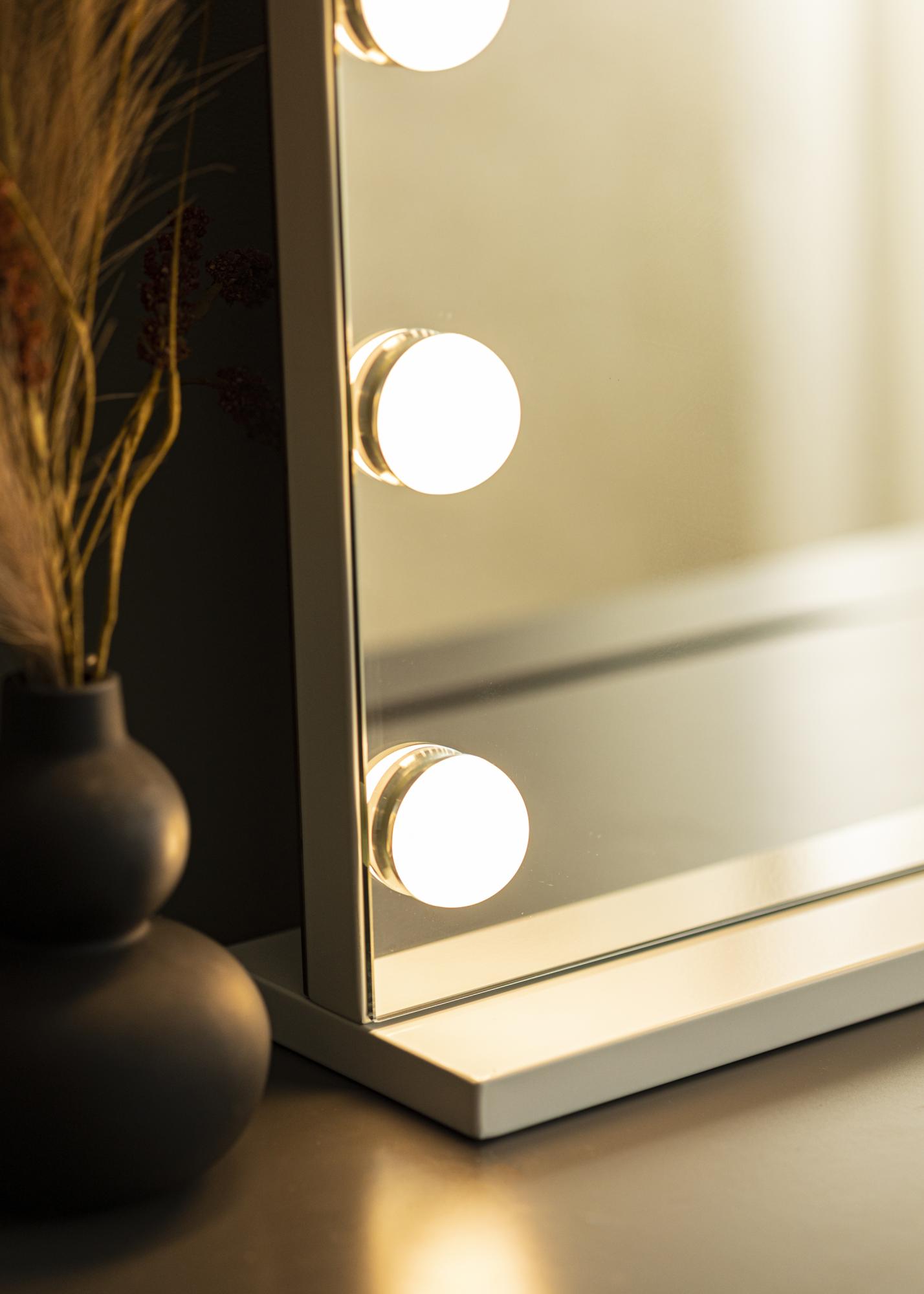Ob dieser schöne Lichtspiegel an der Wand befestigt oder dekorativ aufgestellt werden soll, das bleibt ganz dir überlassen. Der Spiegel ist mit sowohl Halterungen für die Befestigung an der Wand als auch mit einem abnehmbaren Standfuß zum Aufstellen ausgestattet. Außerdem verfügt dieser Spiegel über eine weitere clevere Funktion, da er mit einem USB-Anschluss zum Aufladen von Smartphones ausgestattet ist. So kannst du, während du dich vor dem Spiegel zurechtmachst, schminkst oder einfach betrachtest, gleichzeitig dein Telefon aufladen.