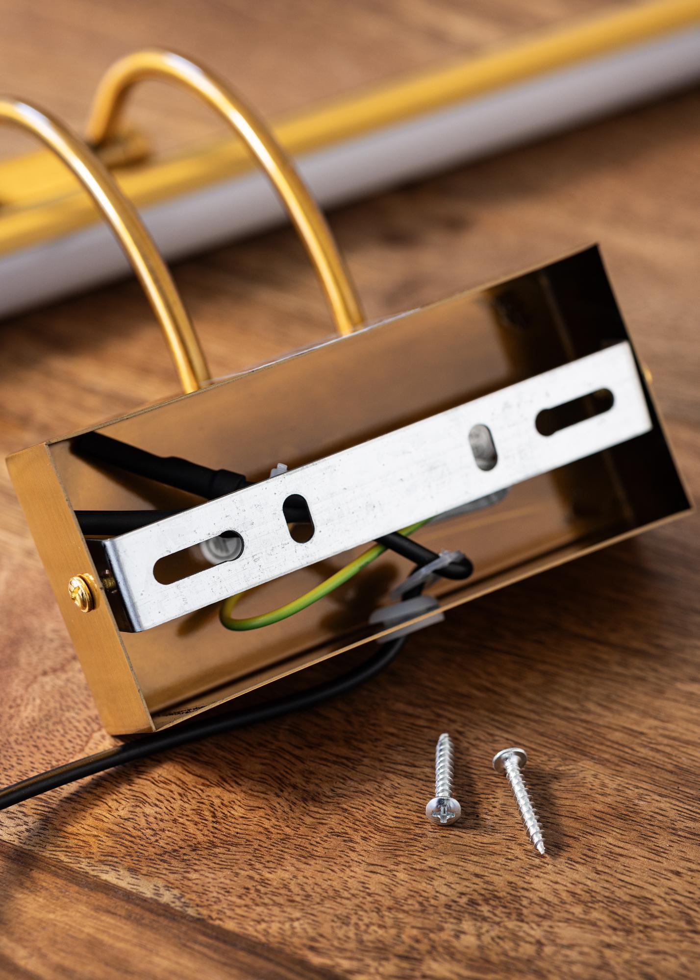 Diese stilvolle Bilderleuchte in Messing bietet eine dezente und elegante Lösung, um Kunstwerke und Fotografien so zu beleuchten, dass Details hervorgehoben werden, ohne den Raum zu dominieren. Mit einer Tiefe von 19 cm und einer Länge von 68 cm ist sie ideal zur Beleuchtung von Bildern mit einer maximalen Breite von bis zu 110 cm. Die integrierte LED-Lichtquelle mit einer Farbtemperatur von 3000K sorgt für ein angenehmes, warmes Licht, das weich genug ist, um eine einladende Atmosphäre zu schaffen, ohne aufdringlich zu sein.