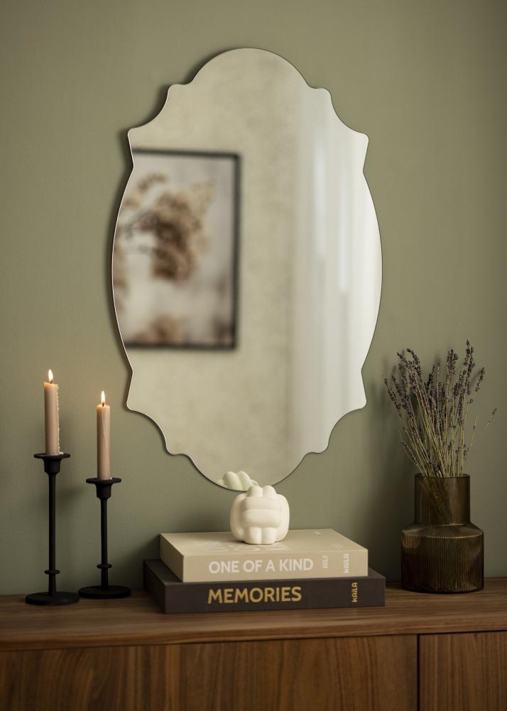 Spiegel von KAILA, mit wunderschöner Wellenform für eine besonders elegante Optik. Dieser Wandspiegel ist dank seines zeitlosen Designs das perfekte Einrichtungsdetail in deinem Schlaf- oder Wohnzimmer. Der Spiegel hat ein klassisches Design mit dünnem ungefärbtem Spiegelglas und einer Wandhalterung, die ein einfaches Aufhängen ermöglicht. Dieser Spiegel hat die Maße 50×80 cm.