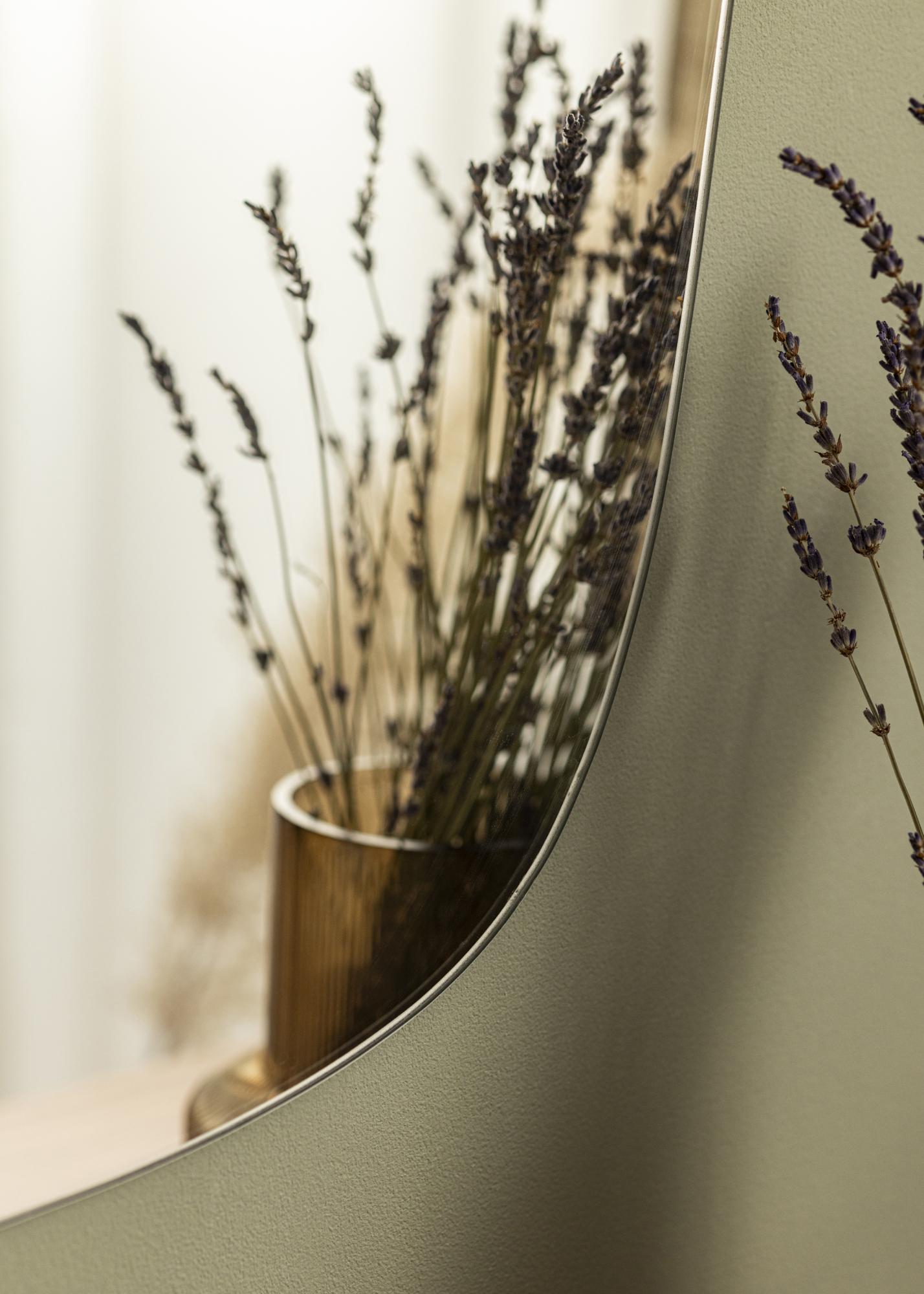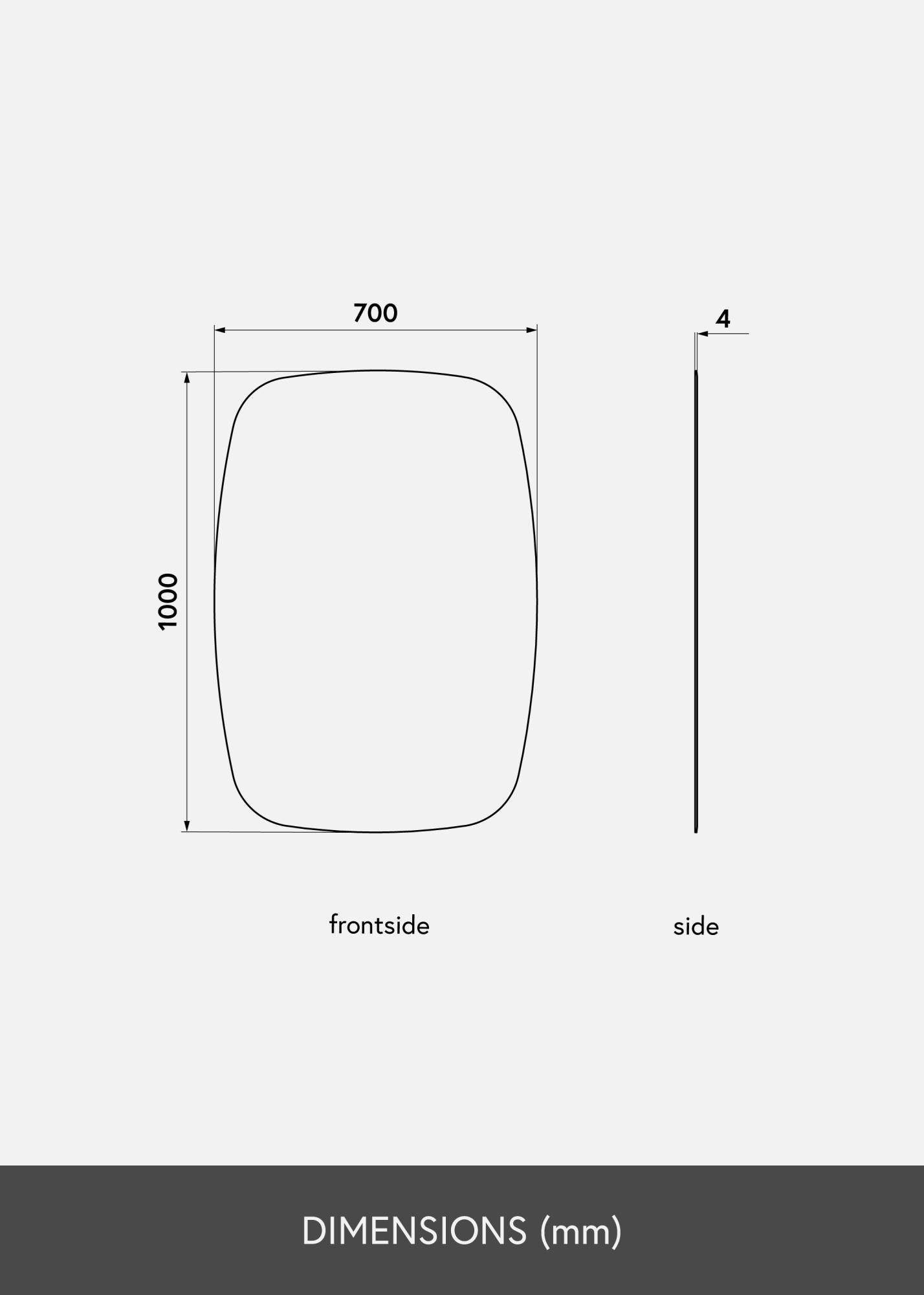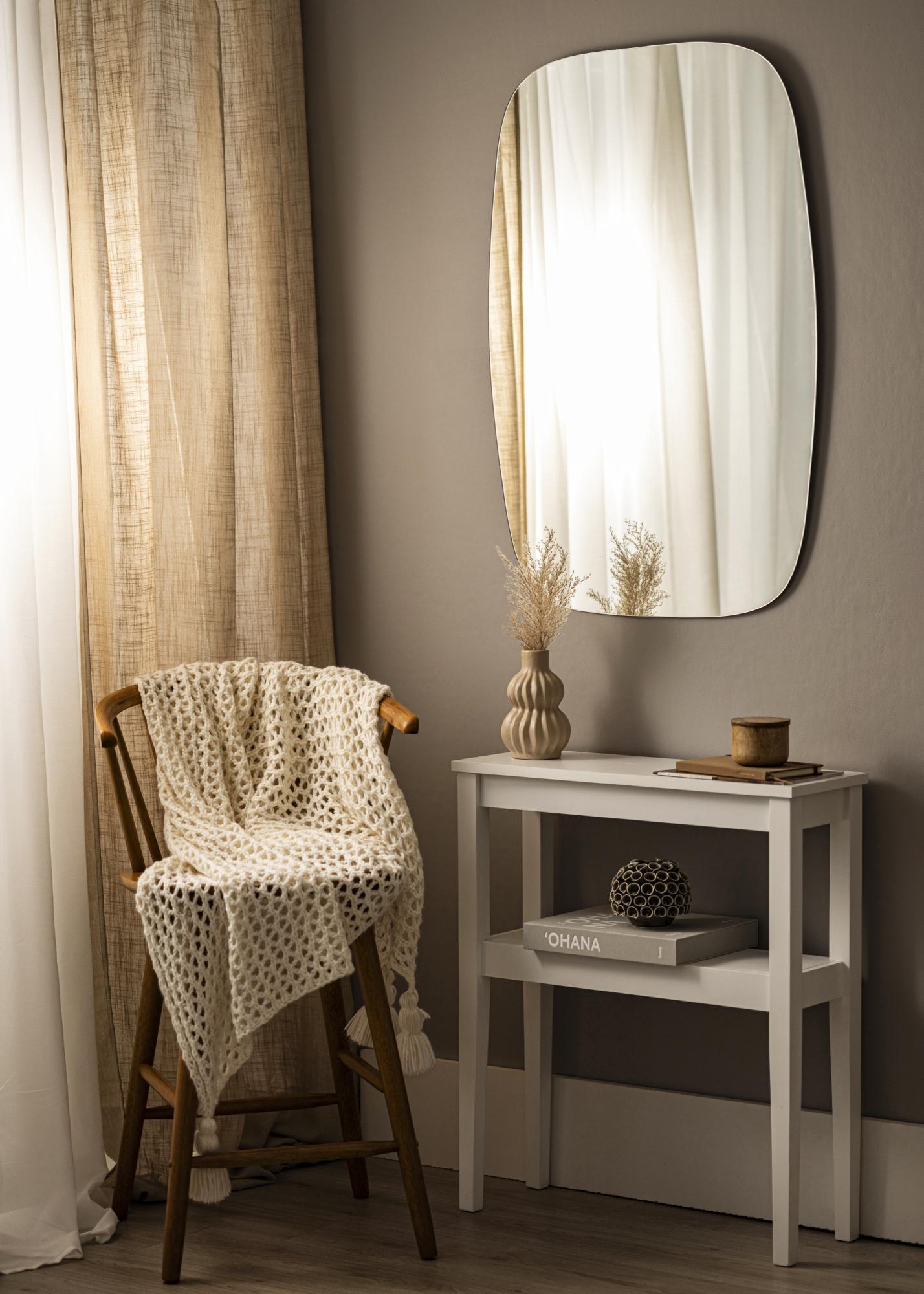 Wunderschöner Spiegel von KAILA mit abgerundeten Ecken und gewölbter Seitenform, der eine unglaubliche Eleganz ausstrahlt. Der Spiegel besteht aus dünnem, ungefärbtem Spiegelglas und hat keinen Rahmen, was seine wunderbar minimalistische Ausstrahlung noch weiter verstärkt. Durch seine elegante Optik fügt sich dieser Wandspiegel perfekt in jedes Zuhause ein. Dank der praktischen Wandhalterung kannst du den Spiegel an der Wand befestigen. Der Spiegel hat die Maße 70×100 cm.