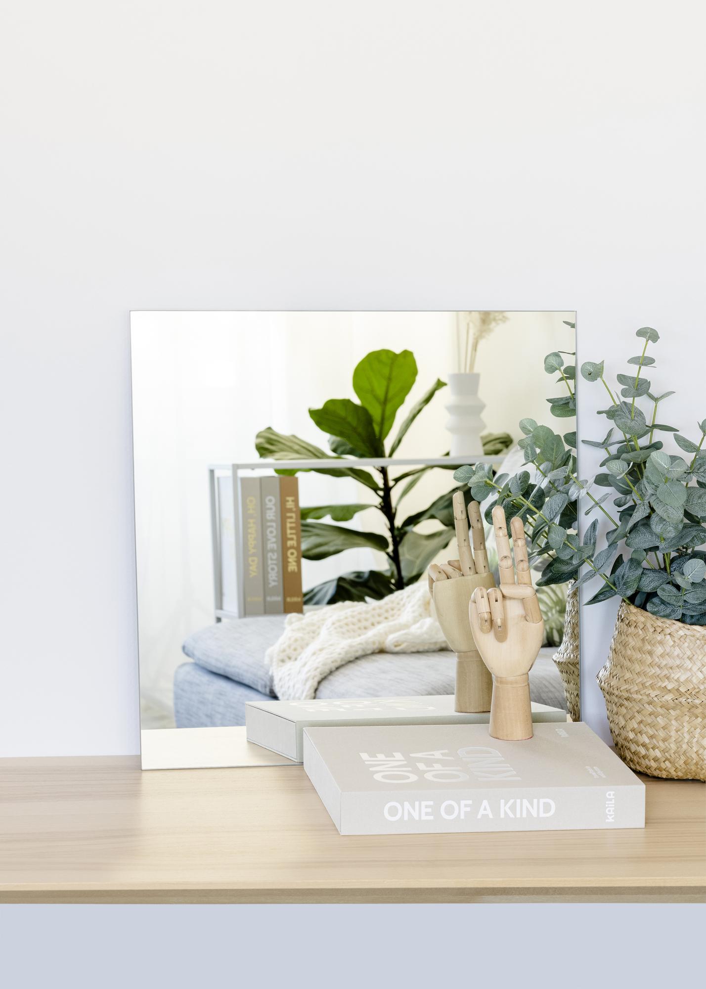 Dieser stylische Spiegel von KAILA hat eine klassische quadratische Form mit scharfen Ecken und verleiht jedem Zuhause Eleganz. Der Spiegel hat keinen Rahmen, was ihm eine zeitlose und minimalistische Optik verleiht. Der zeitlose Stil macht den Spiegel zu einem perfekten Einrichtungsdetail im Schlafzimmer, Flur oder Wohnzimmer. Mit der Wandhalterung auf der Rückseite kannst du den Spiegel ganz einfach an der Wand aufhängen. Der Spiegel ist in mehreren Ausführungen erhältlich, dieses Modell hat die Maße 50×50 cm.
