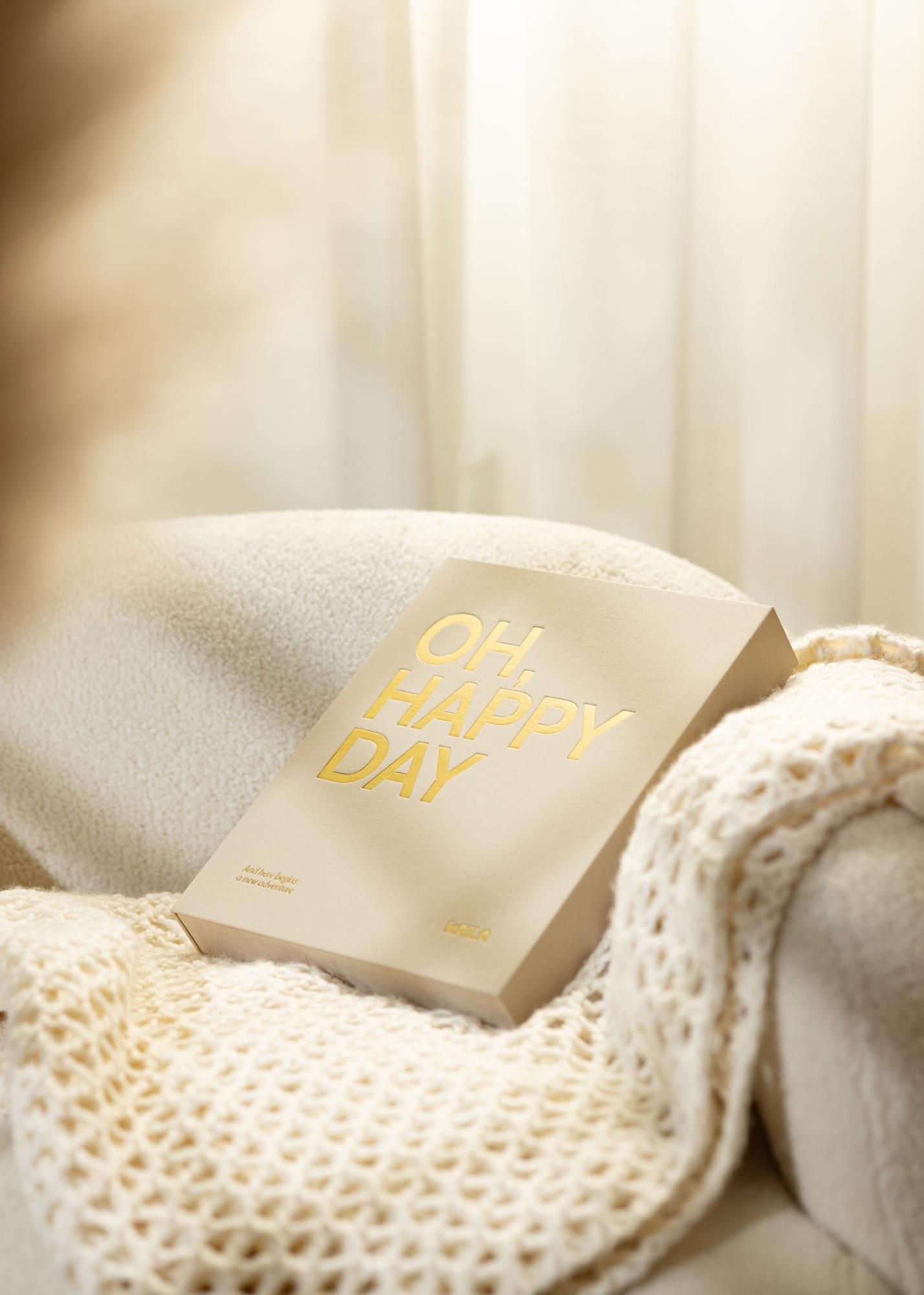 Dieses trendige und ausgesprochen ansprechende Fotoalbum von KAILA ist der optimale Aufbewahrungsort für deine schönsten Foto-Erinnerungen. Ein Fotoalbum im ausgesuchten Design eines Coffee Table Photo Albums, das nicht nur als Fotoalbum, sondern auch als dekoratives, stilvolles Einrichtungsaccessoire überzeugt. Dieses Fotoalbum trägt den Titel ”OH, HAPPY DAY”, gedruckt mit goldenen Großbuchstaben auf dem Einband, sowie den Untertitel ”And here begins a new adventure”.