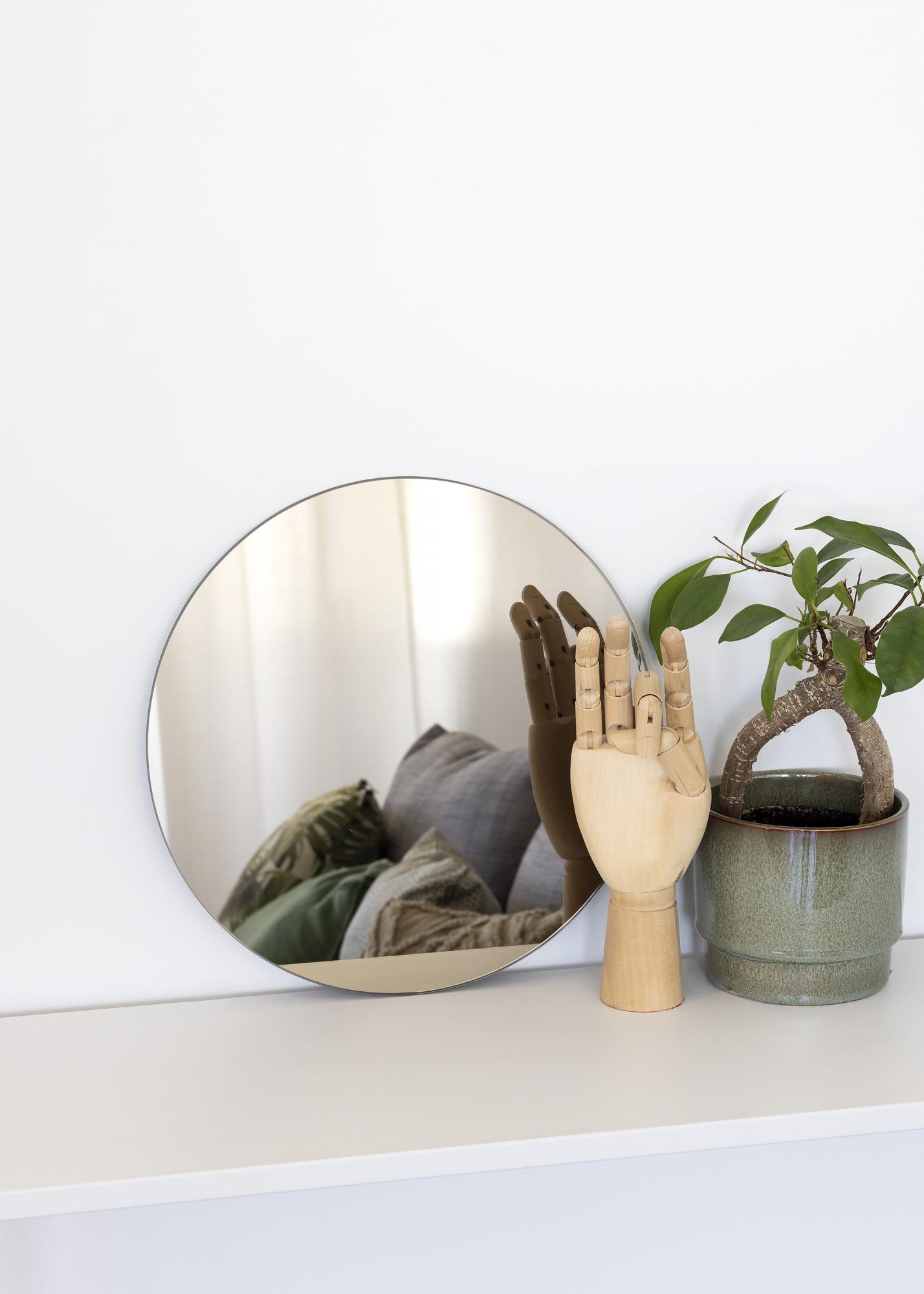 Dieser runde Spiegel verfügt über ein dünnes Design ohne Rahmen, wodurch eine elegante und exklusive Optik vermittelt wird, die jeden Raum aufwertet. Dank Spiegelglas in einem bronzefarbenen Kolorit vermittelt dieser Wandspiegel eine farbenfrohe und wohnliche Optik, die perfekt in moderne Wohnungen passt. Der Spiegel ist Teil einer Serie runder, bronzefarbener Spiegel von KAILA und du kannst zwischen sieben verschiedenen Größen wählen, um genau die zu finden, die am besten in dein Zuhause passt. Dieses Modell hat einen Durchmesser von 30 cm. Mit der Wandhalterung kannst du den Spiegel mühelos im Flur oder Wohnzimmer aufhängen.
