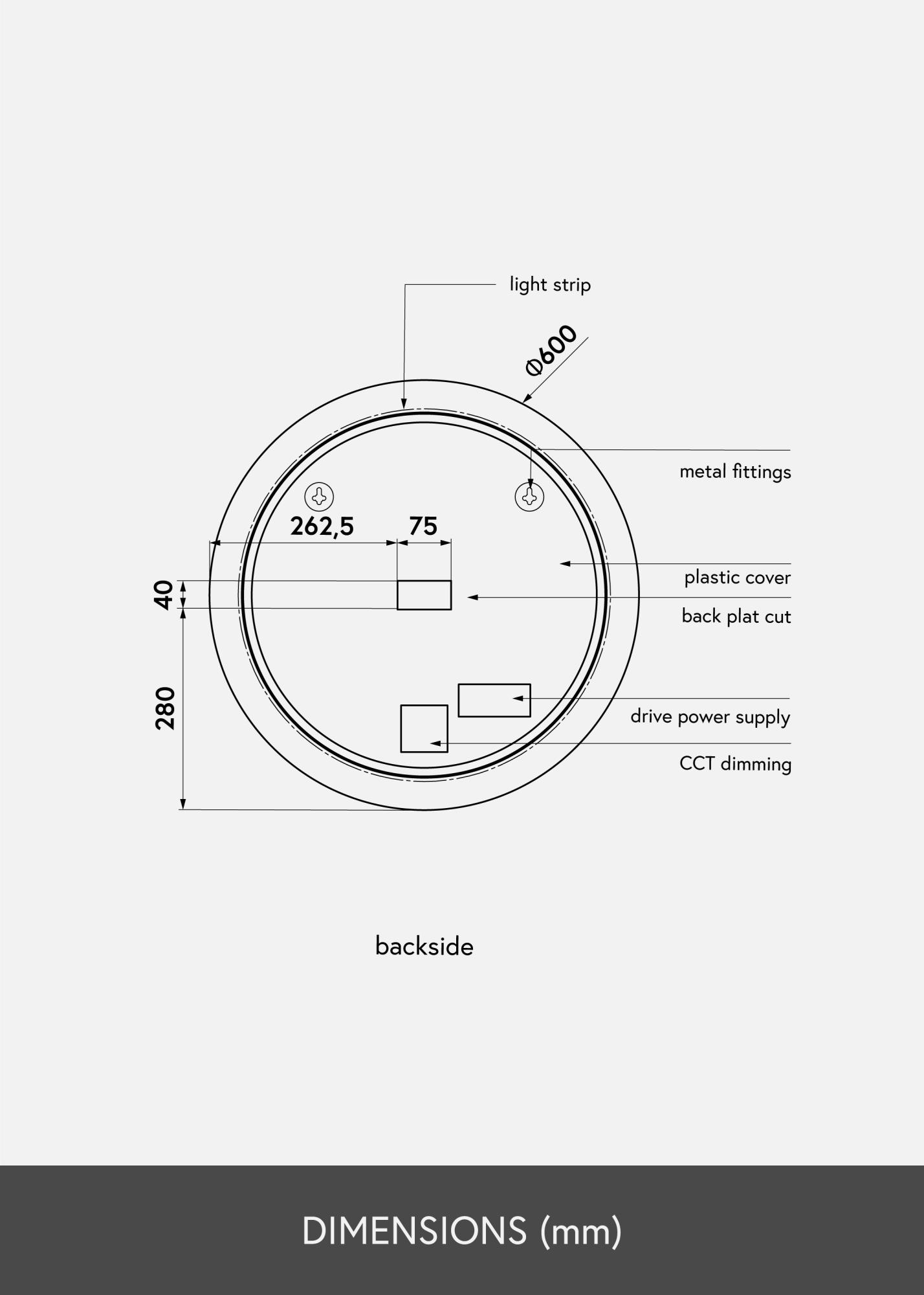 Selbstverständlich ist dieser Spiegel für die Verwendung in Badezimmern geeignet, kann aber auch genausogut in anderen Räumen verwendet werden. Die schöne, elegante Formgebung passt in nahezu jedes Wohnambiente. Der Spiegel besitzt einen Durchmesser von 60 cm und eine Tiefe von 3 cm. Außerdem ist dieser Badspiegel mit Wandhalterungen versehen. Der Spiegel ist für feste Installation vorgesehen und muss an einen Stromschalter angeschlossen werden. Damit der Spiegel ordnungsgemäß und korrekt funktioniert, muss er an einen normalen Schalter angeschlossen werden, nicht an einen Dimmschalter.