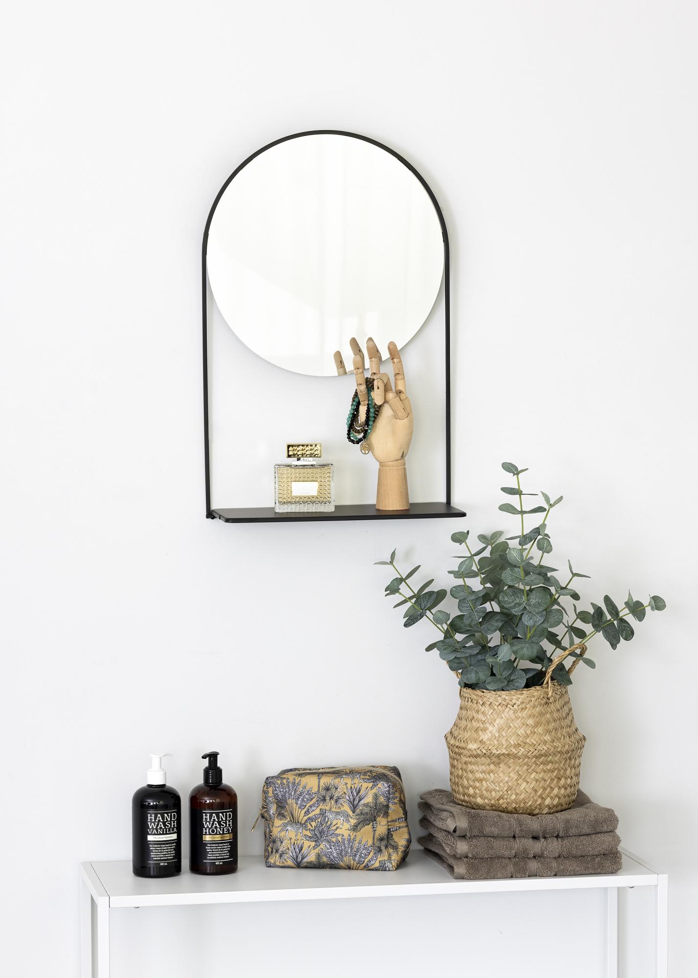KAILA Runder Spiegel mit Ablage - Schwarz 35x55 cm