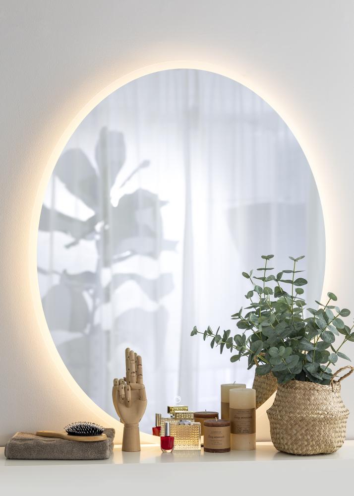 Ein wirklich toller ovaler Badezimmerspiegel in elegantem Design und mit integrierter LED-Beleuchtung! Die LED-Beleuchtung ist dimmbar und kann einfach durch Gedrückthalten des wasserdichten Touch-Feldes eingestellt werden. Der angenehm warmweiße Lichtschein von 3000 K beleuchtet den Spiegel mit einem nach vorne hin strahlenden Lichtschein. Die LED-Technologie ist eine energieschonendere Lichtquelle und steht für ein gleichmäßiges, natürliches Licht. Dieser Spiegel ist feuchtraumgeeignet und damit optimal für die Verwendung in Badezimmern. Der Spiegel ist für feste Installation vorgesehen und muss an einen Stromschalter angeschlossen werden. Damit der Spiegel ordnungsgemäß und korrekt funktioniert, muss er an einen normalen Schalter angeschlossen werden, nicht an einen Dimmschalter.