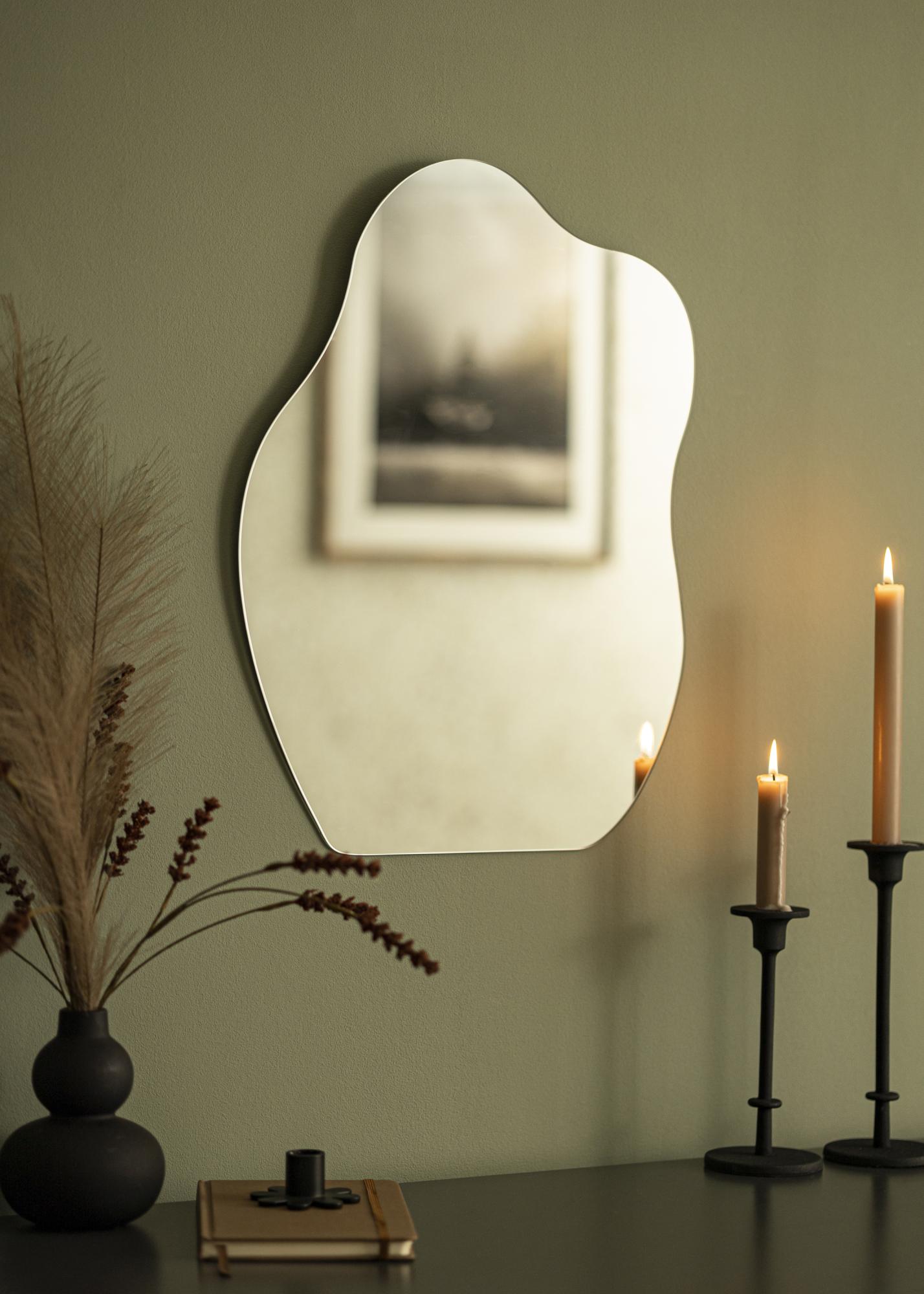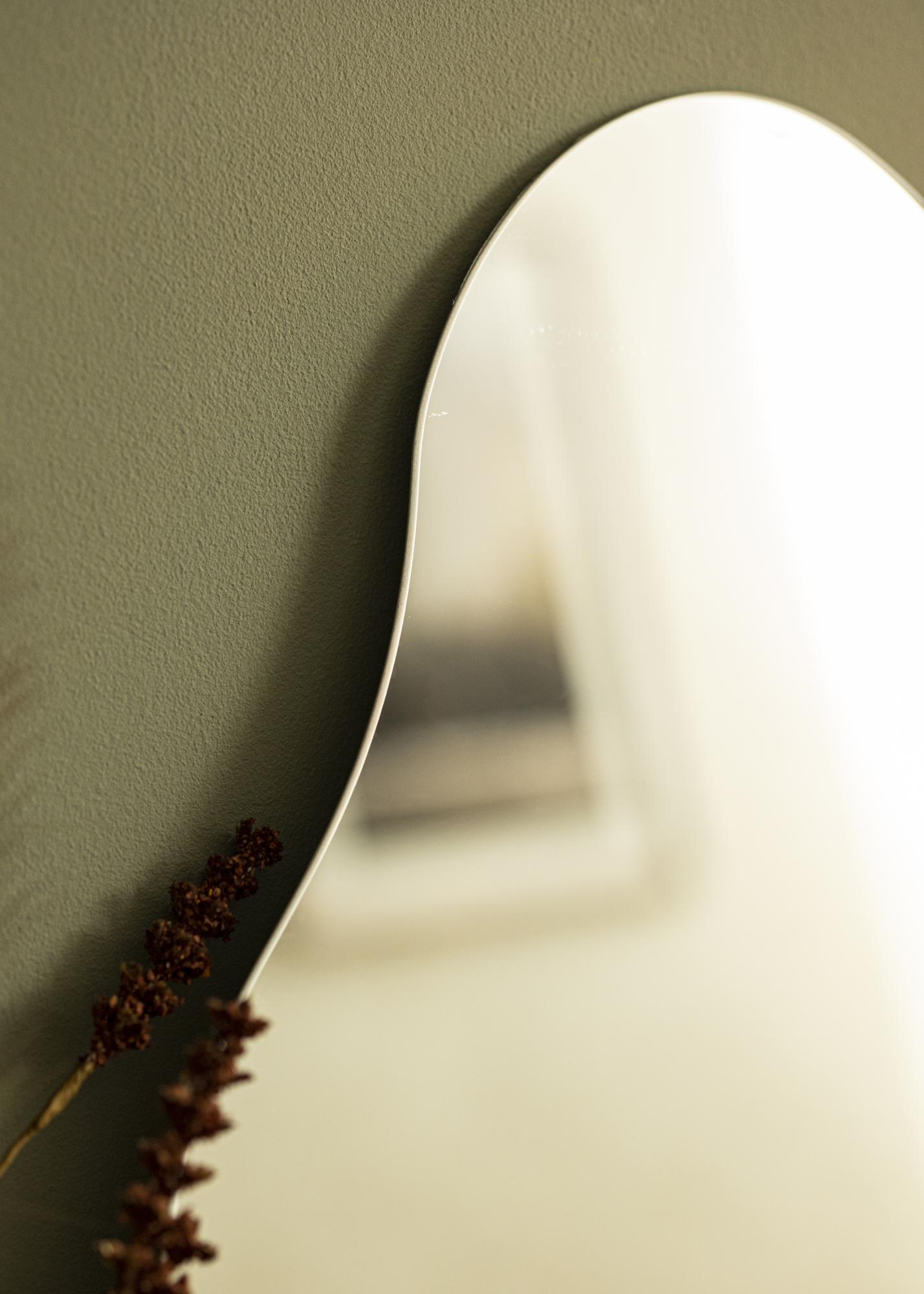 Dieser Wandspiegel bietet Eleganz und Verspieltheit, mit einer welligen Form, die dem Spiegel sein einzigartiges Aussehen verleiht. Die Unterkante ist gerade, was bedeutet, dass der Spiegel gut geeignet ist, um auf einem Möbelstück gegen die Wand gelehnt zu stehen. Natürlich können Sie den Spiegel auch an der Wand montieren!