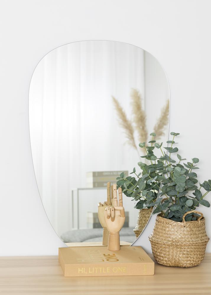 Dieser asymmetrische Spiegel von KAILA wird zu einem modernen Element in deiner Inneneinrichtung. Der Spiegel verfügt über eine weiche Form, die man fast als ungleichmäßig oval bezeichnen kann. Der Wandspiegel ist dünn und hat keinen Rahmen, wodurch sein Eindruck von Eleganz noch verstärkt wird.
