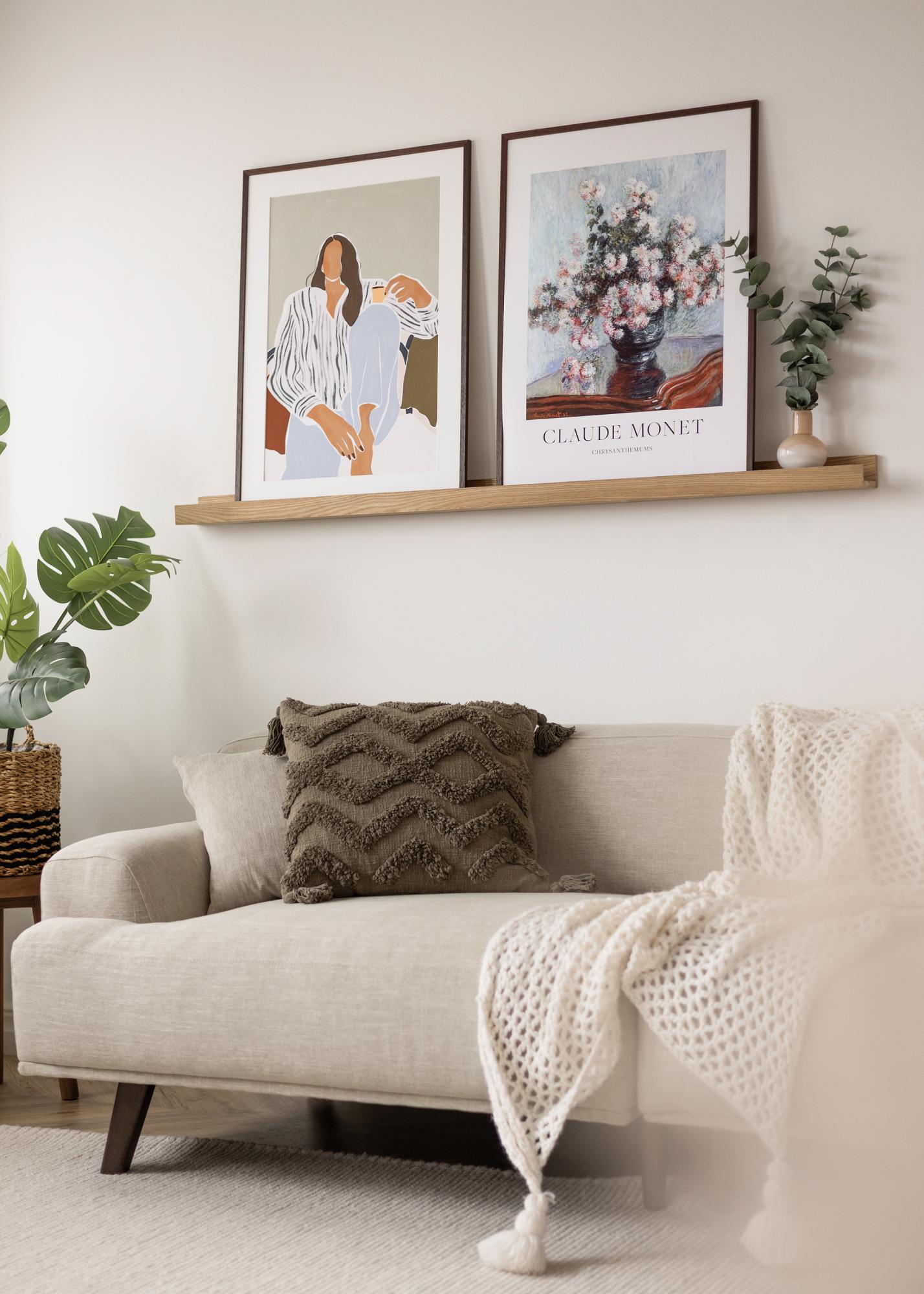 Bitte beachten Sie, dass bei der Bilderleiste aus massivem Eichenholz natürliche Farbvariationen auftreten können. Die Bilderleiste ist mit einem schützenden transparenten Öl behandelt.
