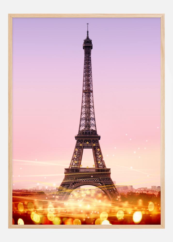 Dieses Poster fängt den majestätischen Eiffelturm in einer stimmungsvollen Dämmerung ein. Die sanften Pastelltöne am Himmel schaffen einen romantischen Hintergrund für dieses ikonische Monument, während die Lichter der Stadt darunter wie Sterne funkeln und ein Gefühl von Magie und Traumhaftigkeit hinzufügen. Es ist eine Hommage an Paris, die Stadt der Lichter, und ihre Fähigkeit, Liebe und Staunen zu inspirieren.