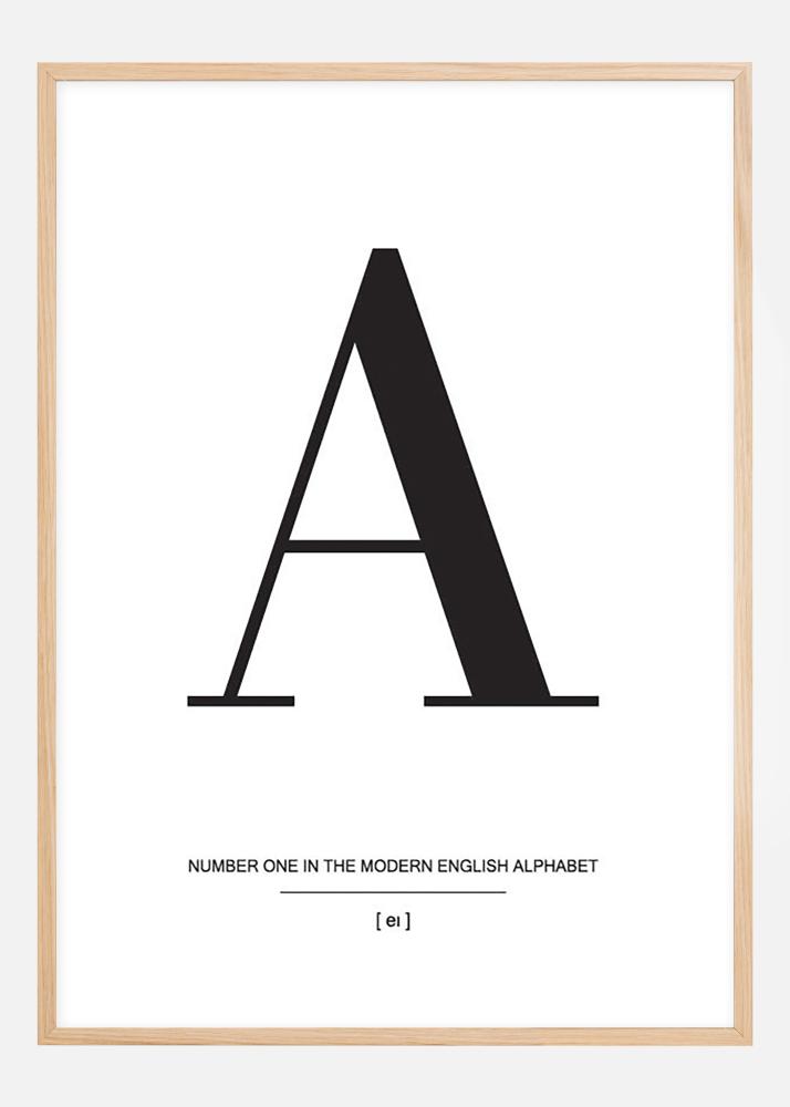 In der Einfachheit liegt das Schöne, und das beweist wirklich dieses stilvolle Poster mit dem Buchstaben A in Schwarz auf weißem Hintergrund. Das Plakat hat eine schicke Typografie und sollte mit anderen Buchstabenplakaten aus derselben Serie ergänzt werden, um eine trendige und schöne Bilderrahmenwand zu schaffen. Wählen Sie Ihre Lieblingsposter mit Buchstaben aus und wählen Sie aus unserem großen Sortiment an Qualitätsbilderrahmen, dann lassen Sie einfach Ihrer Fantasie freien Lauf zu Hause an den Wänden.